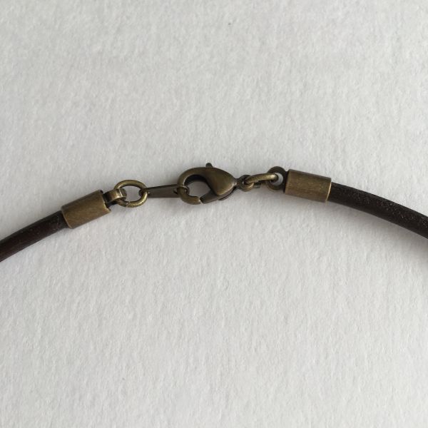 ・直径2ミリの国産丸革紐を使用しました。お好きなペンダントトップなどを通してお使いいただけます。(金具の外径は約3ミリになります。)