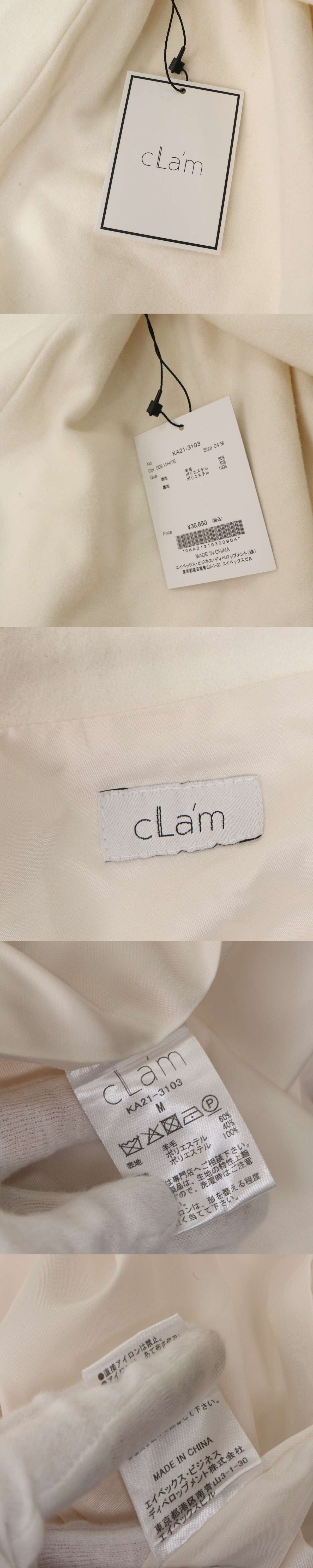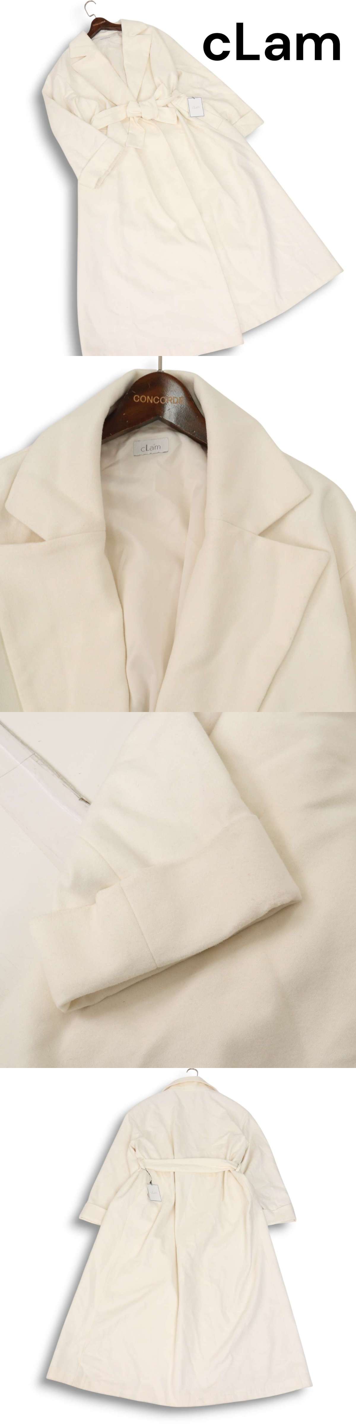 未使用★ cLam クラム 秋冬★ ウエストリボン ウール オーバーサイズ ロング コート Sz.M レディース 白
