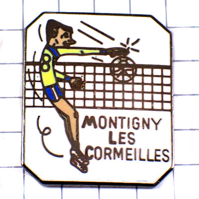 | "ピンバッジ・バレーボール選手アタック白い球ネット際の攻防"の商品説明 | |