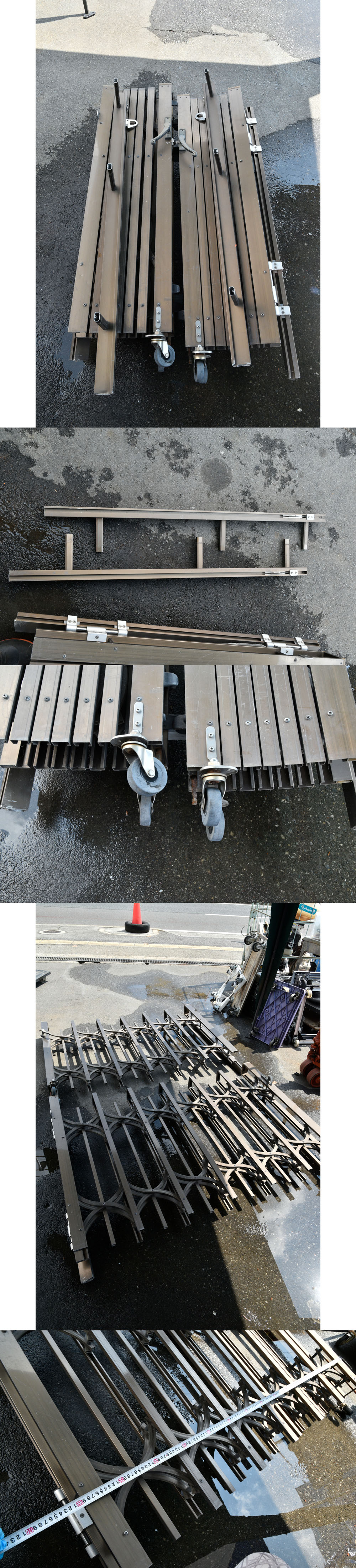 ----------------------------------------------------------------------------------------- ●送料や注意事項は必ずご確認下さい。落札後にトラブルになるケースが増えております。● ◆コンディションは写真・文章にて記載して有りますが、全てのキズの写真は掲載致しておりません。大きなダメージを除き見落とし、記載漏れが有る事はご了承下さい。 ◆当サイトにて出品する商品は多種多彩で、当方商品知識の無い物も多数ありますので落札後の質問やメンテナンス等にはお答えできません。 ◆入札された時点で、画像、文章をご理解していただいたものと判断させていただきます。不明な点は前もってQ&Aからお願い致します。入札後の質問やお電話等でのキャンセルは一切受け付け致しません。 ◆商品説明に「ノークレーム」と記載しているものに関しては、如何なる状況で届いても保証致しません。詳しくは注意事項の「商品到着後について」の最後に記載しておりますのでご確認下さい。 ---------------------------------------------------------------------------------------- 中古品ですのでキズ、ヨゴレ、サビ等あります。未清掃です。 サビのせいかキャスター動きません。 パーツ揃っているかどうかは分かりません。 こちらのお品は運送事故を含めノークレームノーリターンでの出品となります。 片方(収納時) 幅36 奥12 高122cm | ||