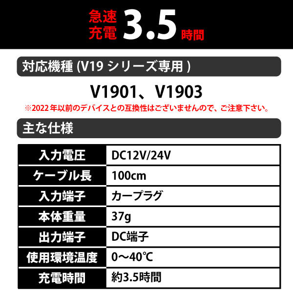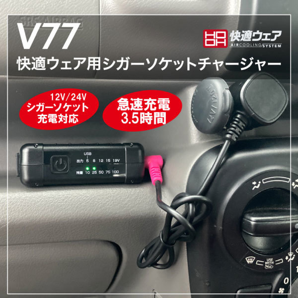 村上被服 快適ウェア シガーソケット 【V77】快適ウェア用シガーソケットチャージャー ●ブラック● ケーブル100cm V19シリーズ専用