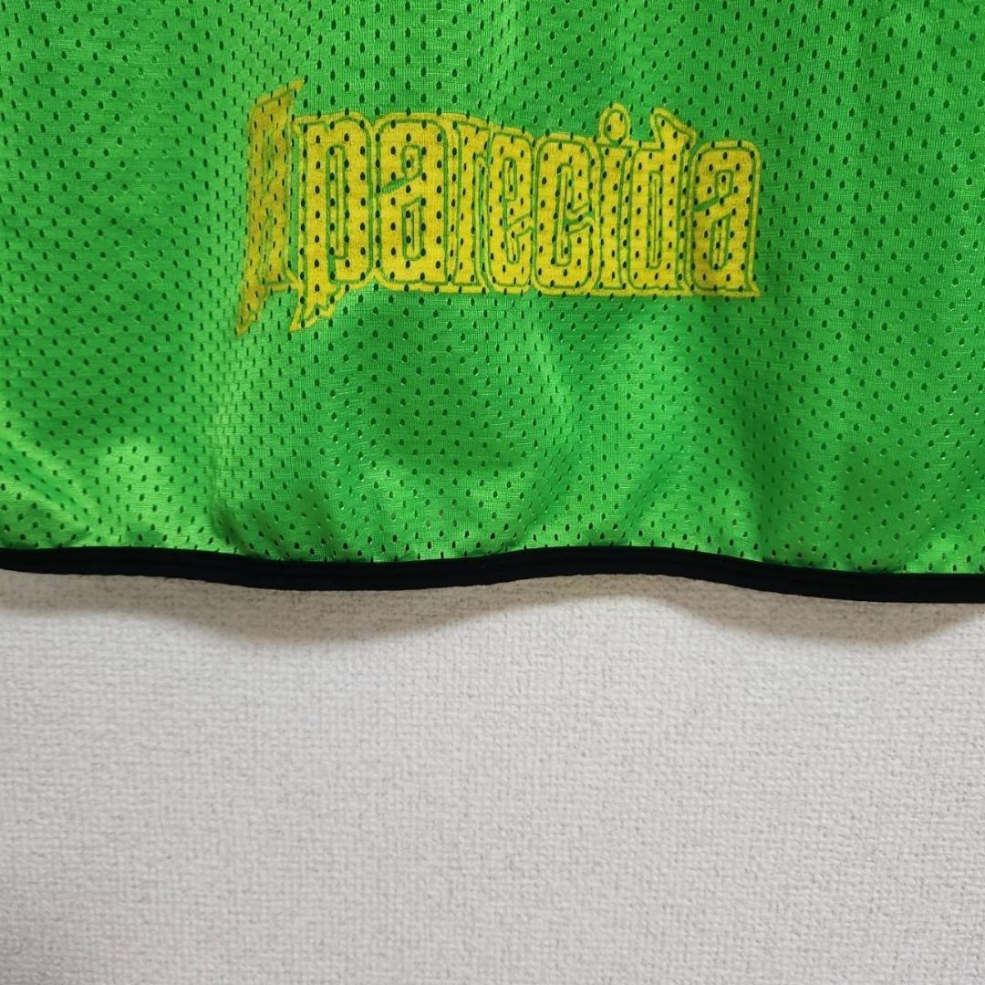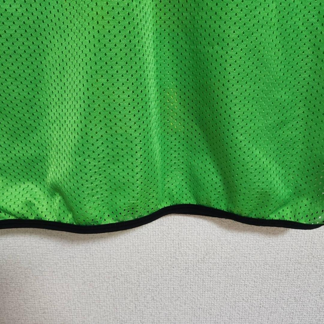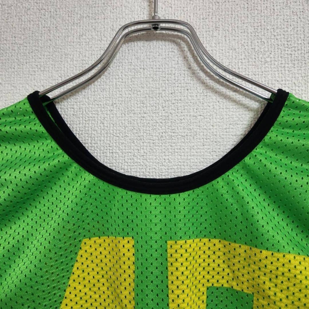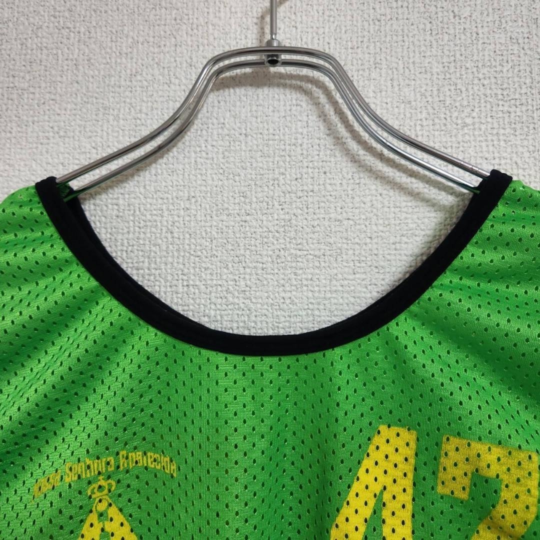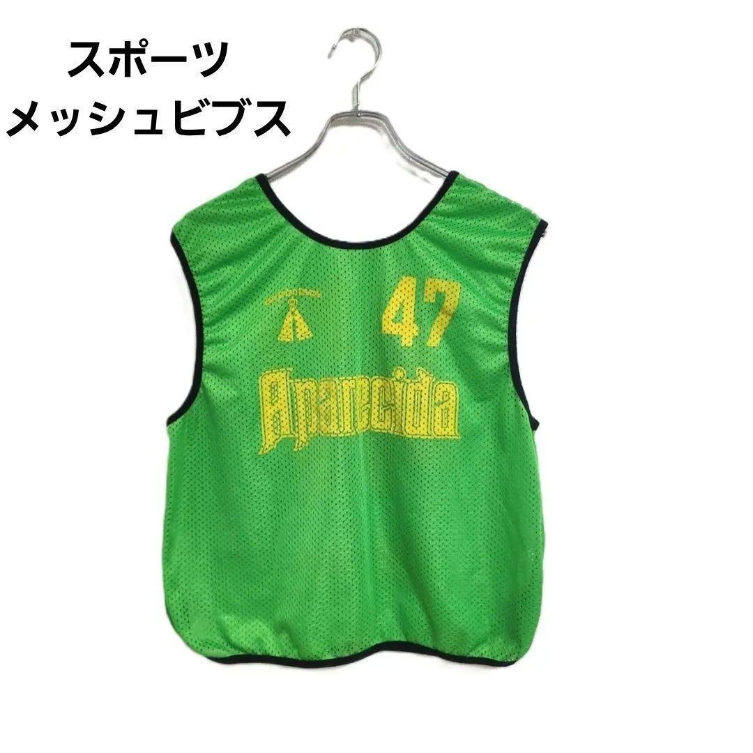 鮮やかなグリーンにイエローの「Aparecida」ロゴとナンバー47がプリントされたスポーツ用メッシュビブスです。軽量で通気性の良いメッシュ素材を使用しており、部活動や練習試合、イベントなどに最適です。肩口や裾には黒の縁取りが施され、スポーティなデザインが魅力です。使用感は少なく、まだまだお使いいただけます。