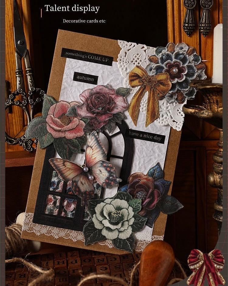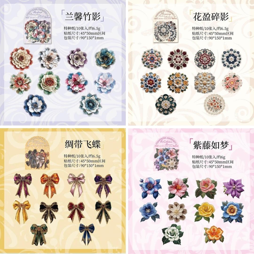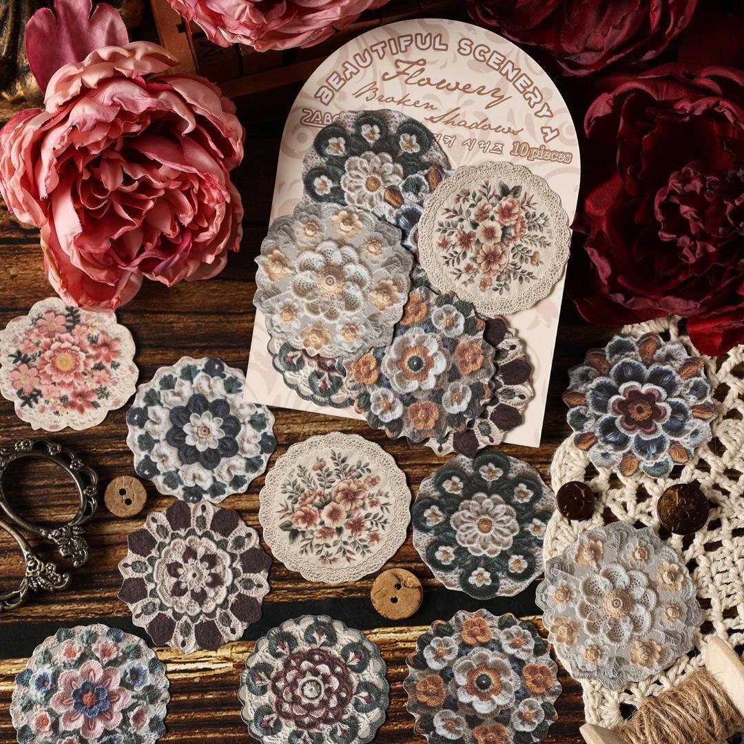 刺繍風のアンティークデザインのステッカーシールです♪