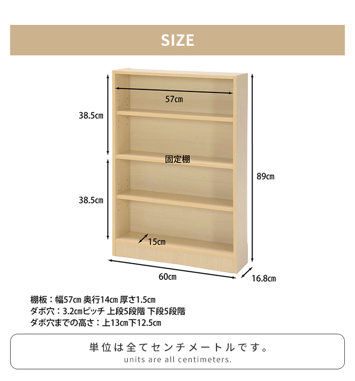 | [全体]幅60×奥行16.8×高さ89cm [棚板厚]1.5cm |