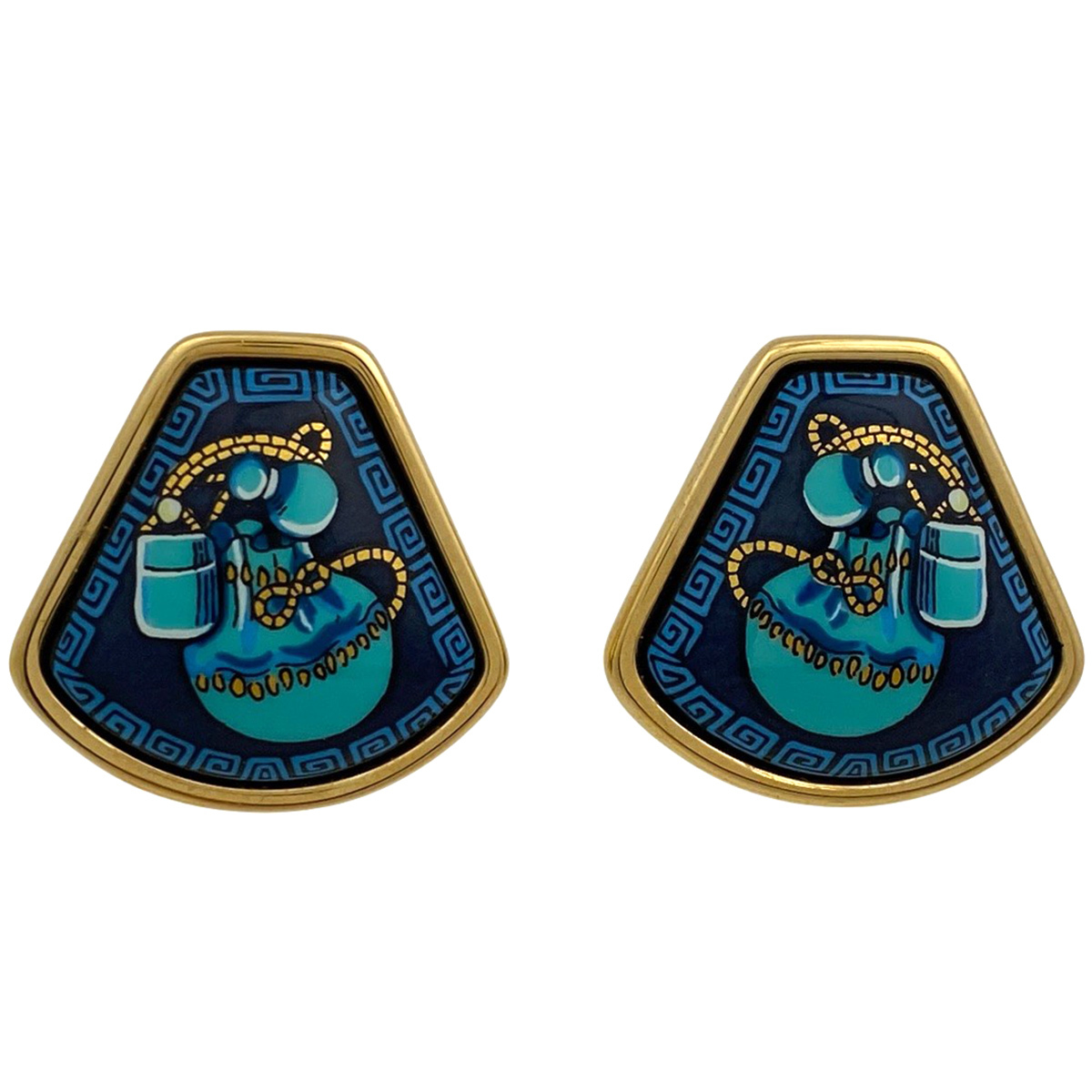 | エルメス HERMES エマイユ イヤリング 七宝焼き イヤリング GP ゴールド ブルー レディース 【中古】 |