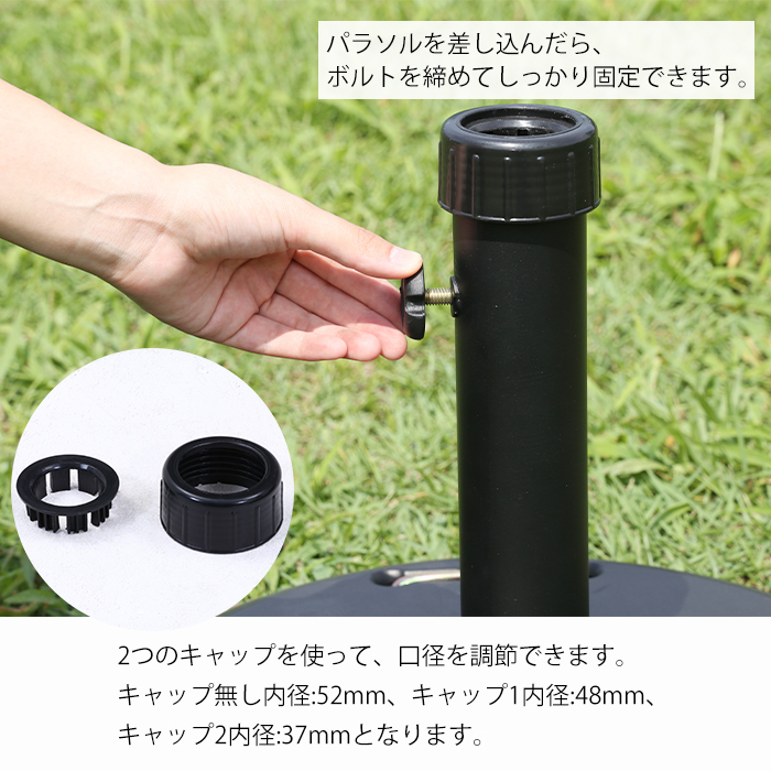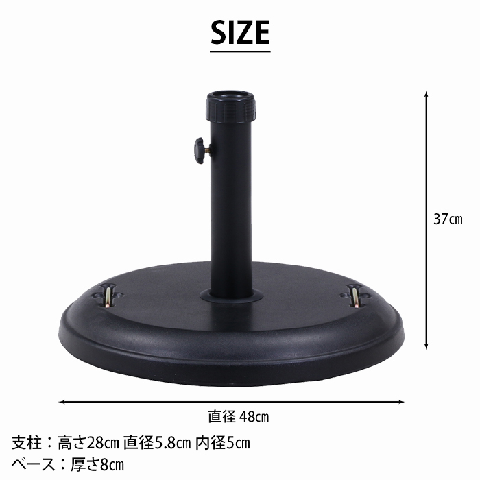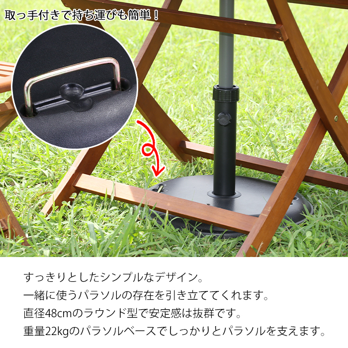 重さ22kgのどっしりとした安定感のあるパラソルベースです。