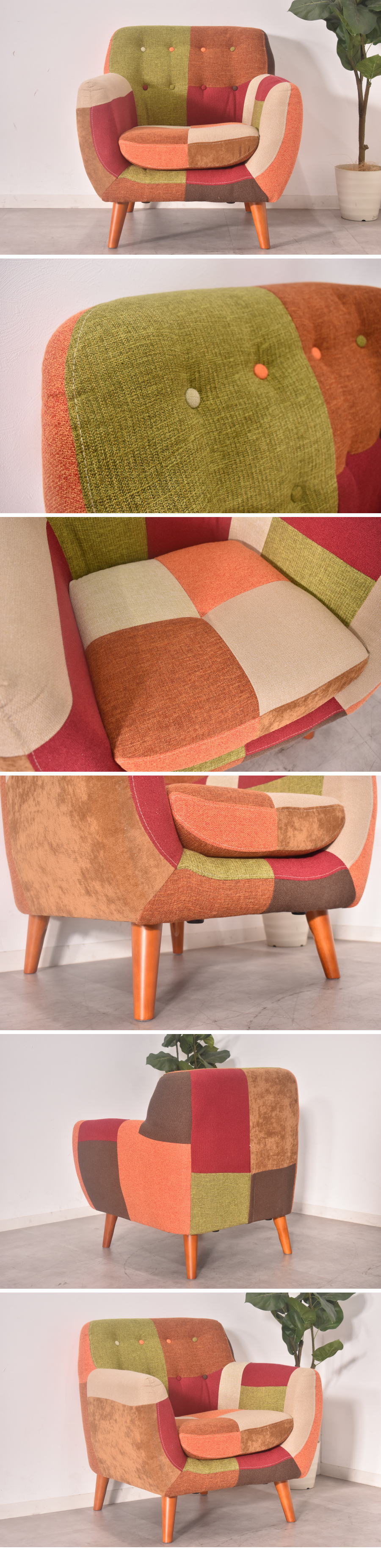 | 【限定送料無料 新品 展示処分品】F1207Lカラフル 布製 パッチワーク 1P シングルソファ |