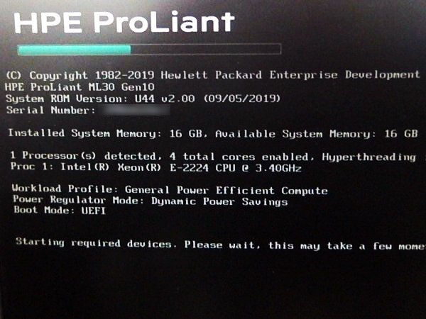■○ HPE ProLiant ML30 Gen10 Xeon E-2224 3.40GHz/RAM 16GB/HDD 2TB×1 SAS/OS 無し/BIOS起動確認
