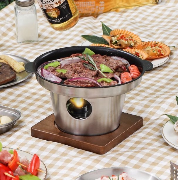 バーベキュー 鉄板プレート 焼き肉プレート 焼肉プレ ト ひとり用 鉄板焼き プレート 一人用コンロ 専用木台付き ミニコンロ付き z1549