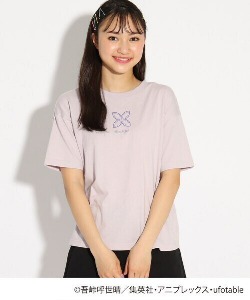 PINK-latte ピンクラテ 鬼滅の刃 Tシャツ (ライトパープル) キッズ 160 胡蝶 しのぶ きめつのやいば