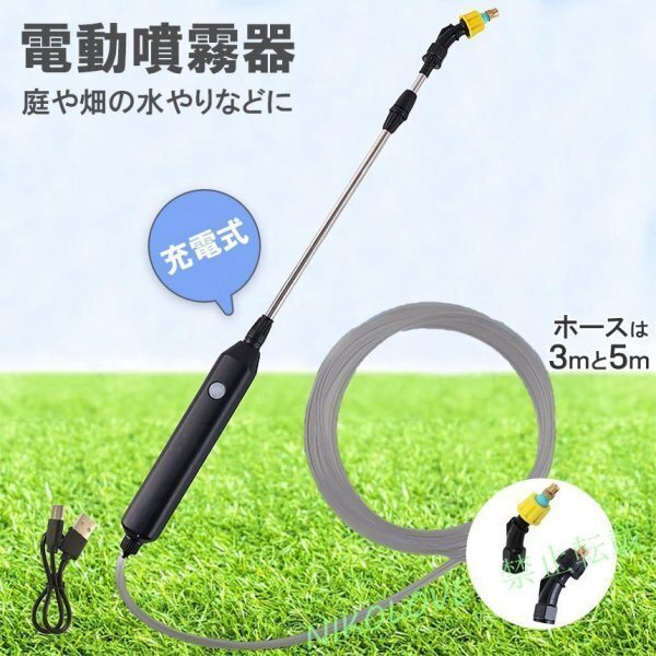 【USB充電】電動スプレーにはバッテリーが付属しております。USB-TypeC充電式(USB充電ケーブル付属)で、パソコンやモバイルバッテリーなどUSBソケットのある機器に接続して充電することができます。1~2時間使用可能