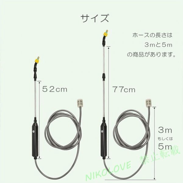 【サイズ、セット内容】ハンドル本体約23cm、噴霧ノズル約52~77cm、ホース3mもしくは5m