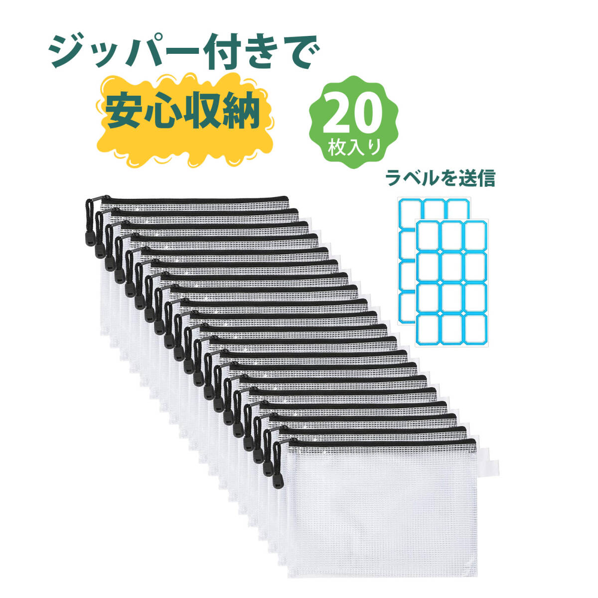 | パッケージ内容 | A5サイズの黒い書類バッグ20枚+ラベルステッカー2枚 |