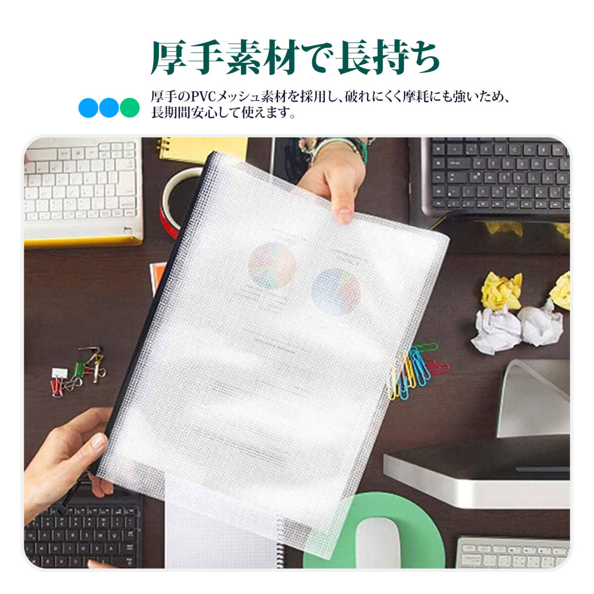 | この商品について | 【優れたPVC素材で長持ち】:柔軟で弾力のある高品質PVCを採用。擦れや折れに強く、大切な書類をしっかり保護します。 【透明メッシュデザインで中身が見やすい】:クリアな網目加工で、書類やチケット、小物類をすぐに確認。探す手間を省き、スムーズに取り出せます。 【スムーズ開閉のジッパー式】:滑らかなジッパーで開け閉めラクラク。加長ストラップ付きで、持ちやすく持ち運びにも便利。 【コンパクト&持ち運びやすいA5サイズ】:バッグにすっきり収まり、出張や外出先でも必要な資料をスマートに持ち歩けます。 【幅広い用途に対応】:オフィスでの契約書整理、学校でのプリントや試験用紙管理、家庭でのレシートや領収書保管、旅行のチケットや小物収納など多彩に活躍。 |