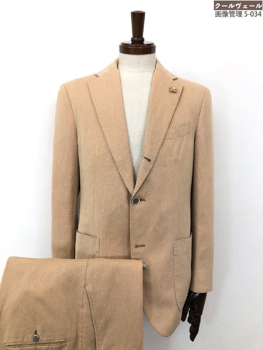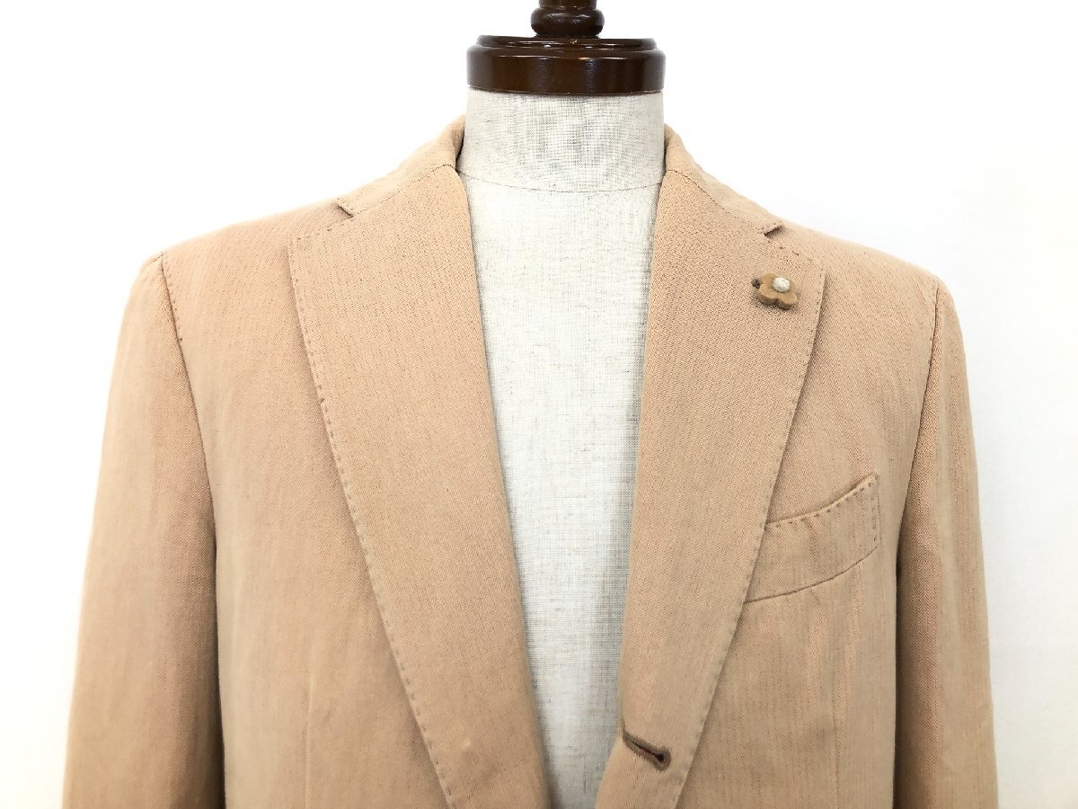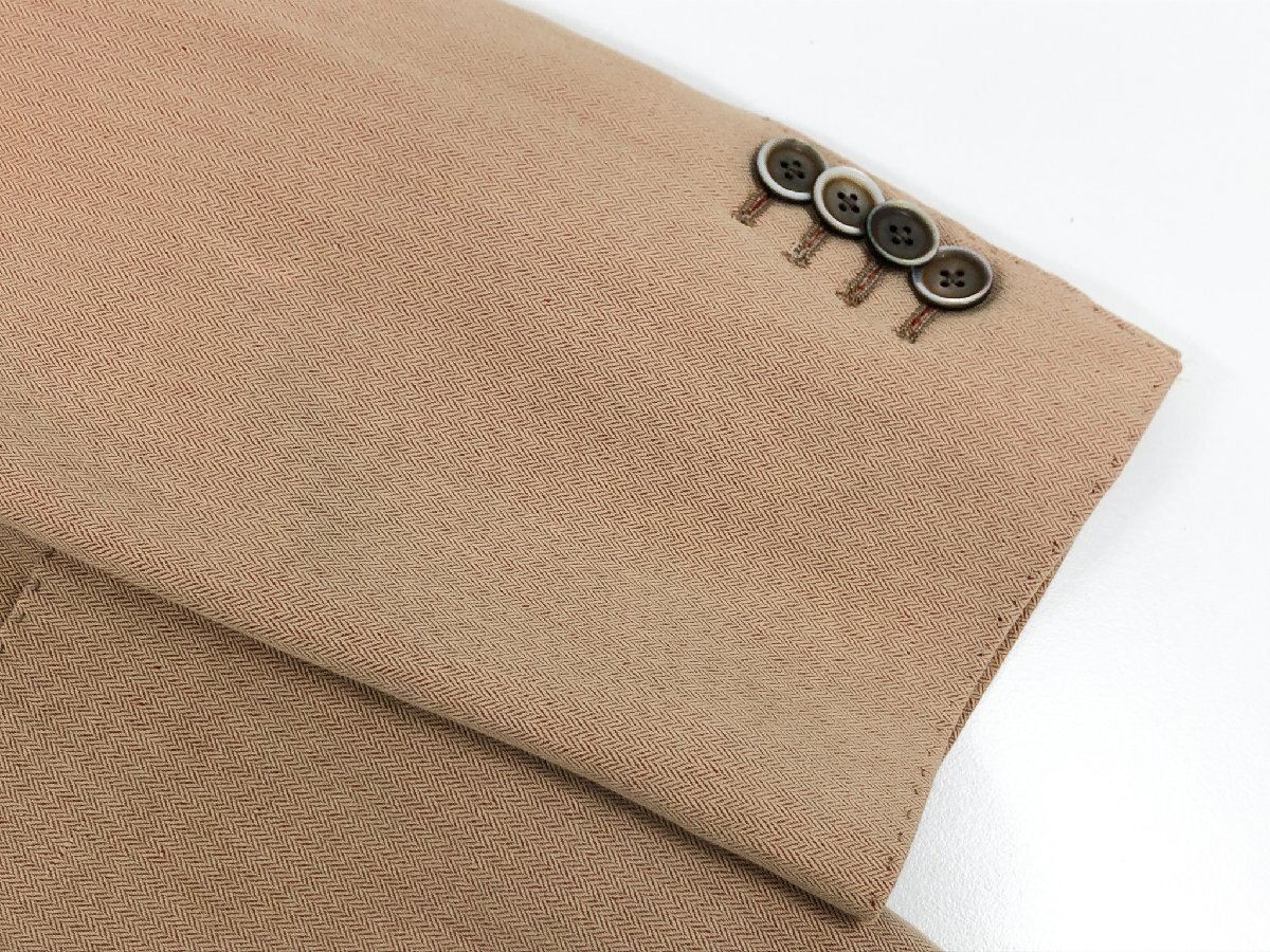 HH【ラルディーニ LARDINI】 7162340488J コットンリネン シングル3B段返り スーツ (メンズ) 48 ベージュ系 ヘリンボーン 伊製 ◇32RMS2504