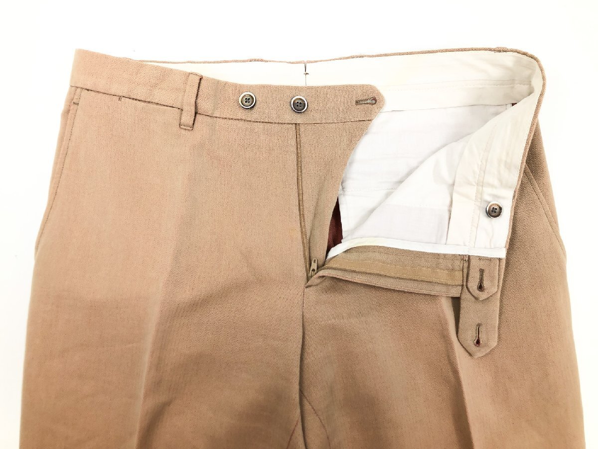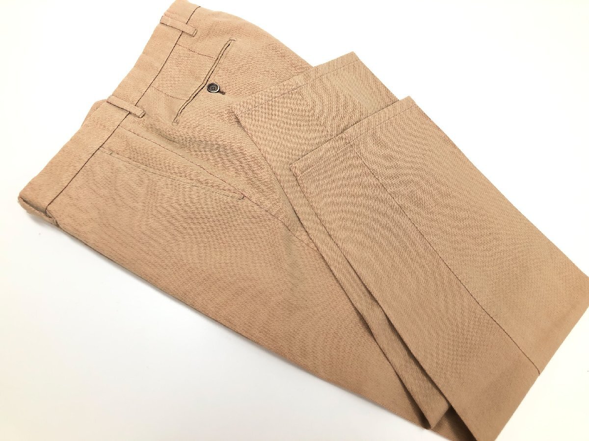 ・スラックス・・・ウエスト実寸約84センチ(3センチ出し、3センチ詰め可能)、股上約25センチ、渡り幅約31センチ、股下約72センチ、総丈約94センチ、裾幅約19.5センチ、タタキ仕上げ(最大で0センチ出しが可能です)