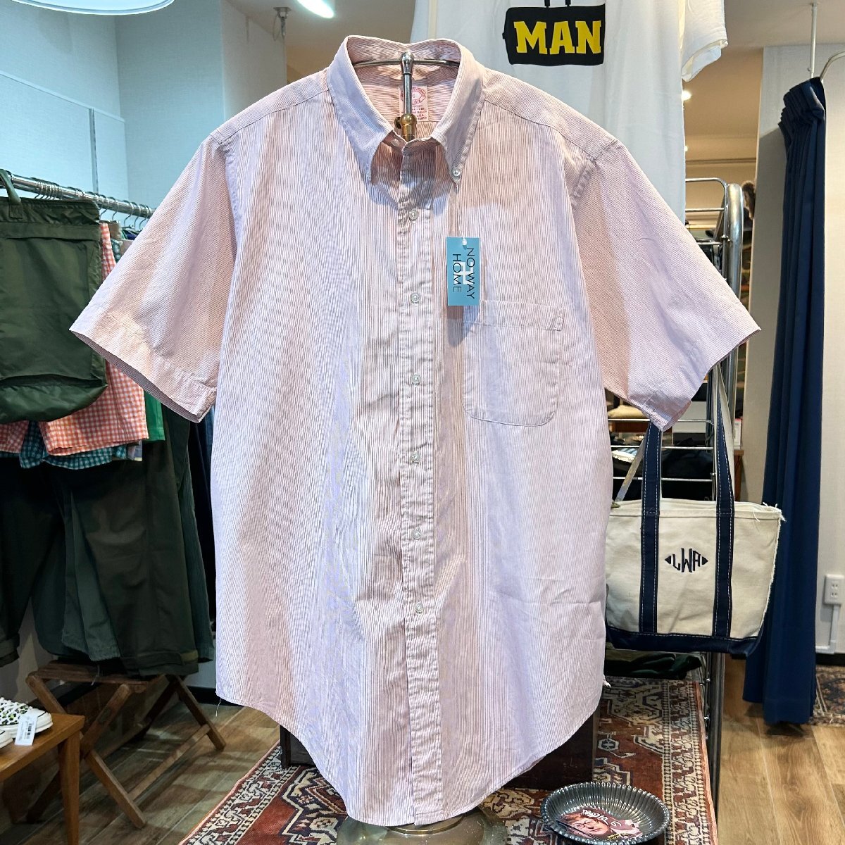 90's USA製 ビンテージ ブルックスブラザーズ Brooks Brothers 白×赤ストライプ コットン 半袖シャツ ボタンダウン 16 EG2209-3-70-EH02