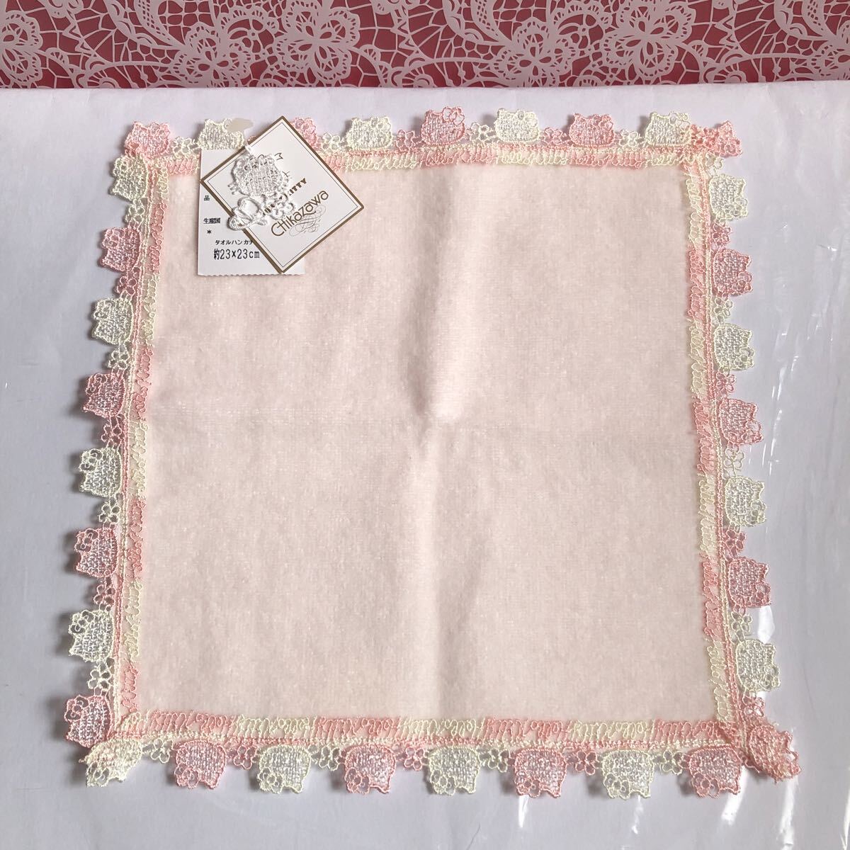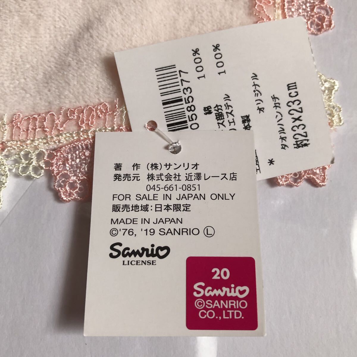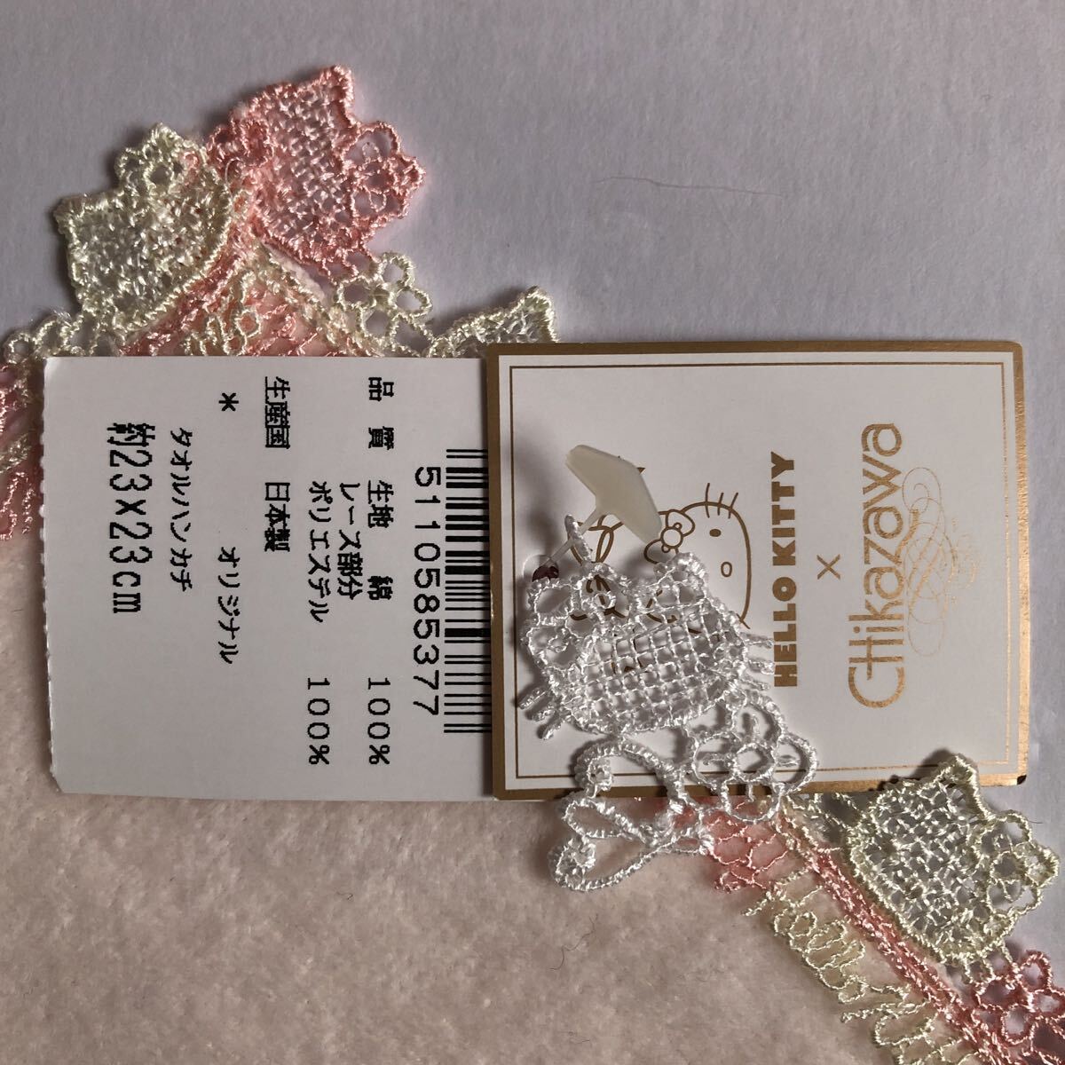 近沢レース タオルハンカチ ハローキティ コラボ限定 ハンカチ サンリオ ピンク チャーム付き タグ付き未使用品