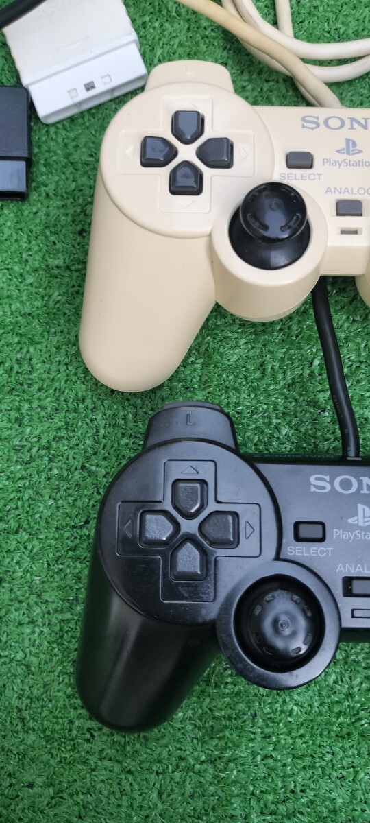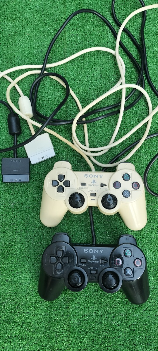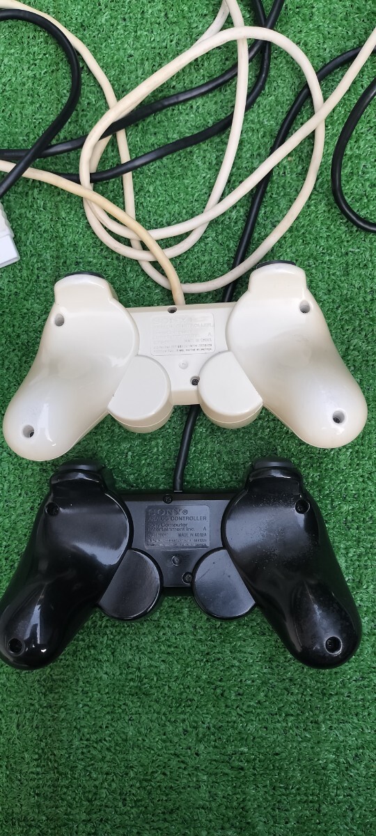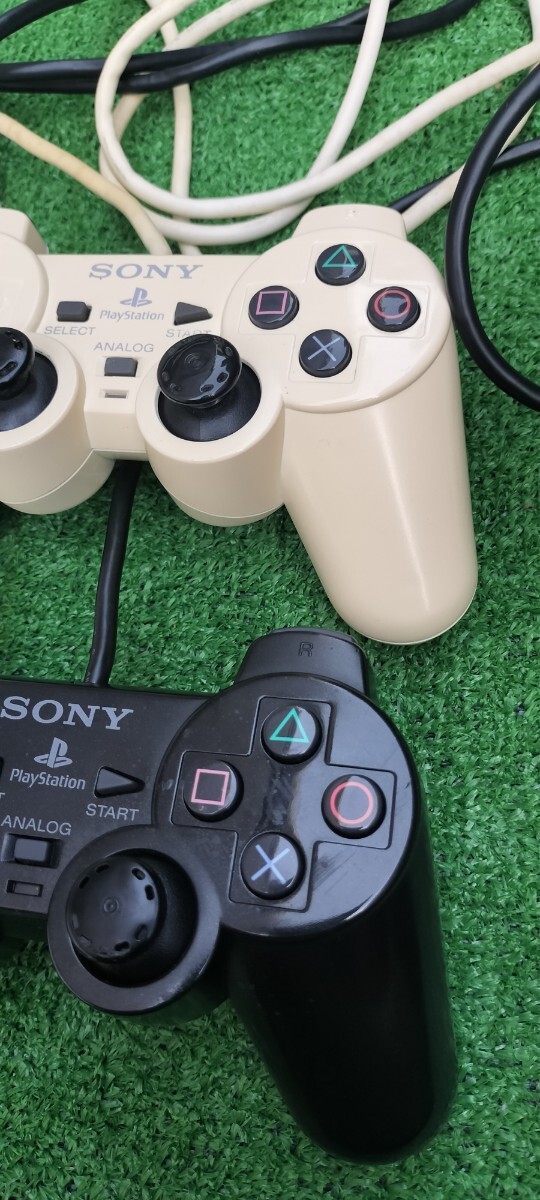 アナログスティックのゴムは、2個共ありません。黒コンクールのアナログスティックを押すと戻らない時がたまにあります。プレイには、問題ありませんでした。宜しくお願いします。。