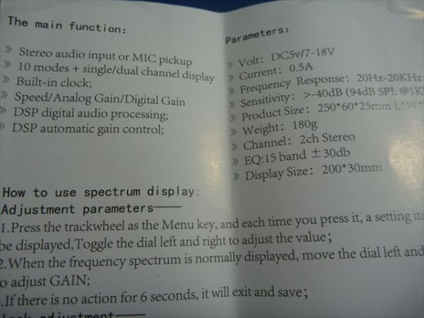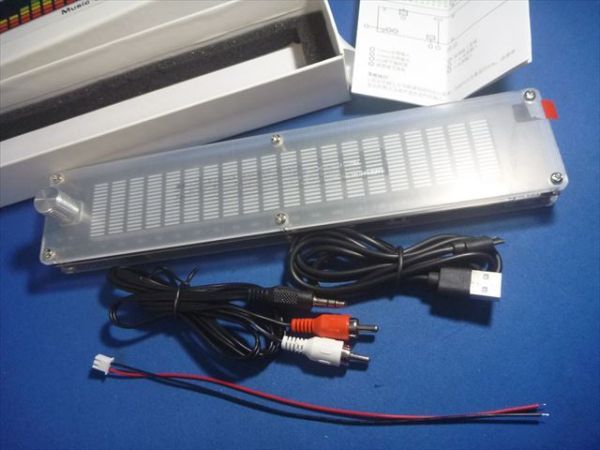 商品説明 | 写真では12Vで動作確認しています。(7-18V位を受け付けます) USB 5Vでも動作可能です。 写真の12Vバッテリーは付属しません。 AGC機能あり 完成品ですのでそのままお使いいただけます。 入力は 3.5mmステレオです。 出力は 3.5mmステレオです。 ケーブル付属しています。 前面、写真で白っぽく見えるのは、保護フィルム剥がしていないせいです。 お送りするのは新品箱入になります。 大きさ 約245××cm 表示パターンは複数あります。 音声入力用3.5mm×RCAケーブルは付属しています。 一般的な音声用3.5mmケーブルがご使用いただけます。 美しいオーディオレベルメーターに仕上がっており、携帯電話CD、DVD、MP3、ラジオ、ポータブルプレイヤー等様々な音楽ソースでお使いいただけます。自作オーディオや車内で自由にお使いいただけます。 ステレオスピーカー出力(左+-)(右+-)4線(一般的には赤と黒の線)で配線したい方別途変換器をご用意しています。