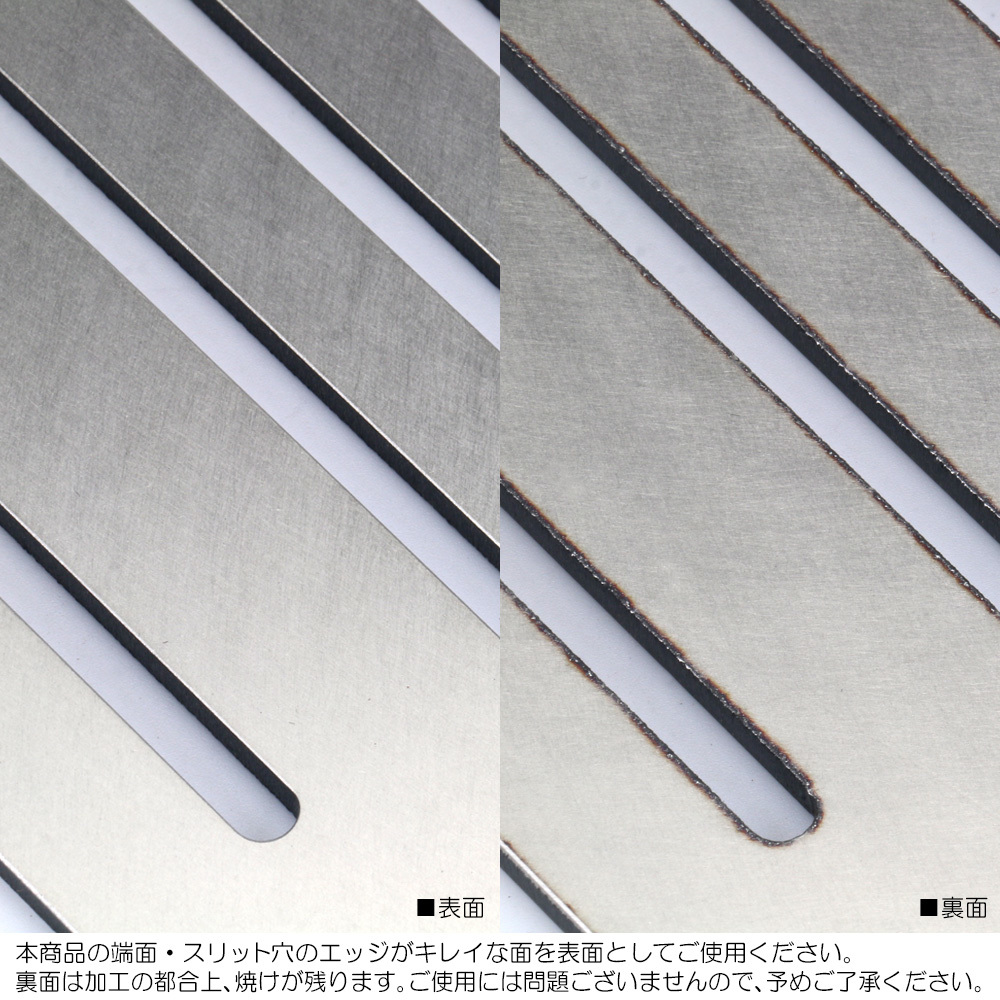 鉄板の焼面にスリットと呼ばれる細長い穴をあけ、網焼き以上の調理を楽しめる加工をしております。 鉄板の余熱と輻射熱による遠赤外線効果で、より一層美味しく焼きあげ、香ばしさと味わいを楽しめる極厚鉄板となります。スリット穴で余分な油を落としヘルシーな仕上がりになるので、カロリーが気になる方にもおすすめアイテムです。