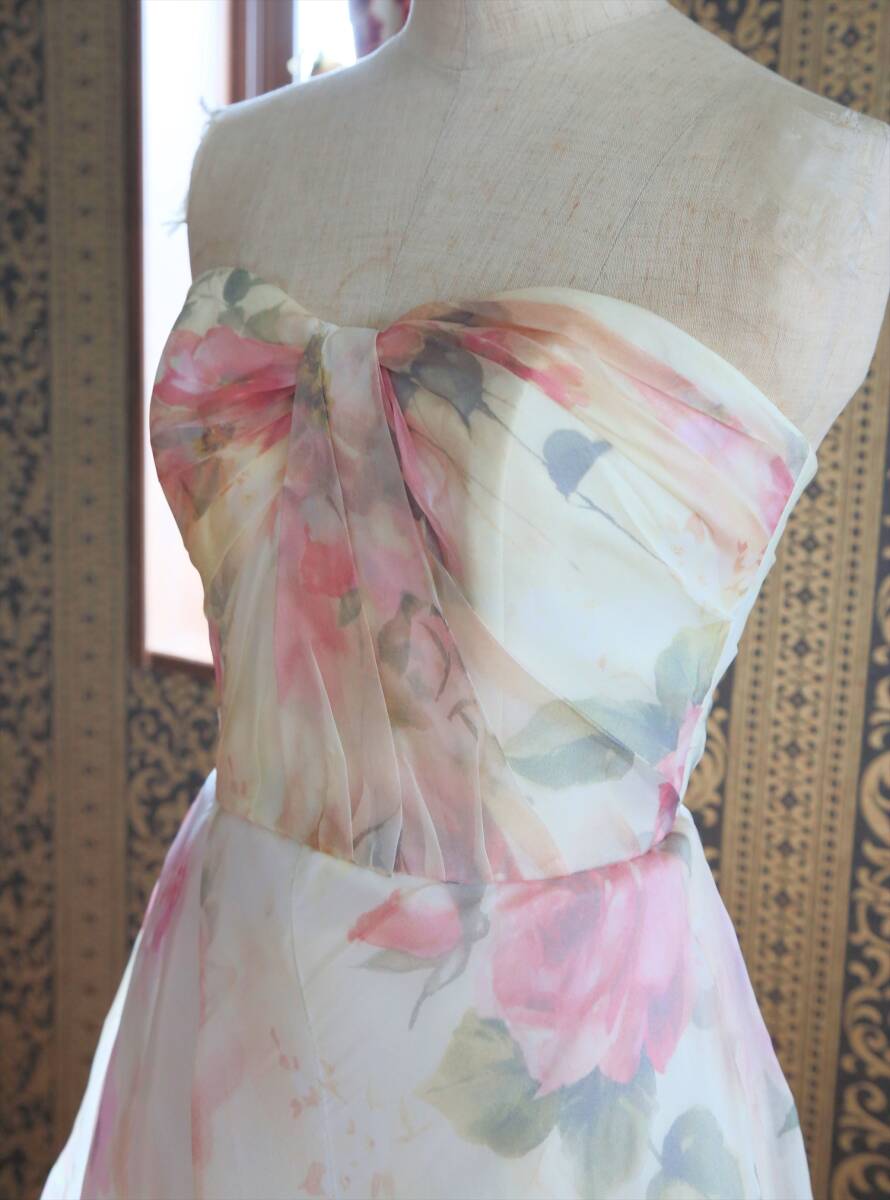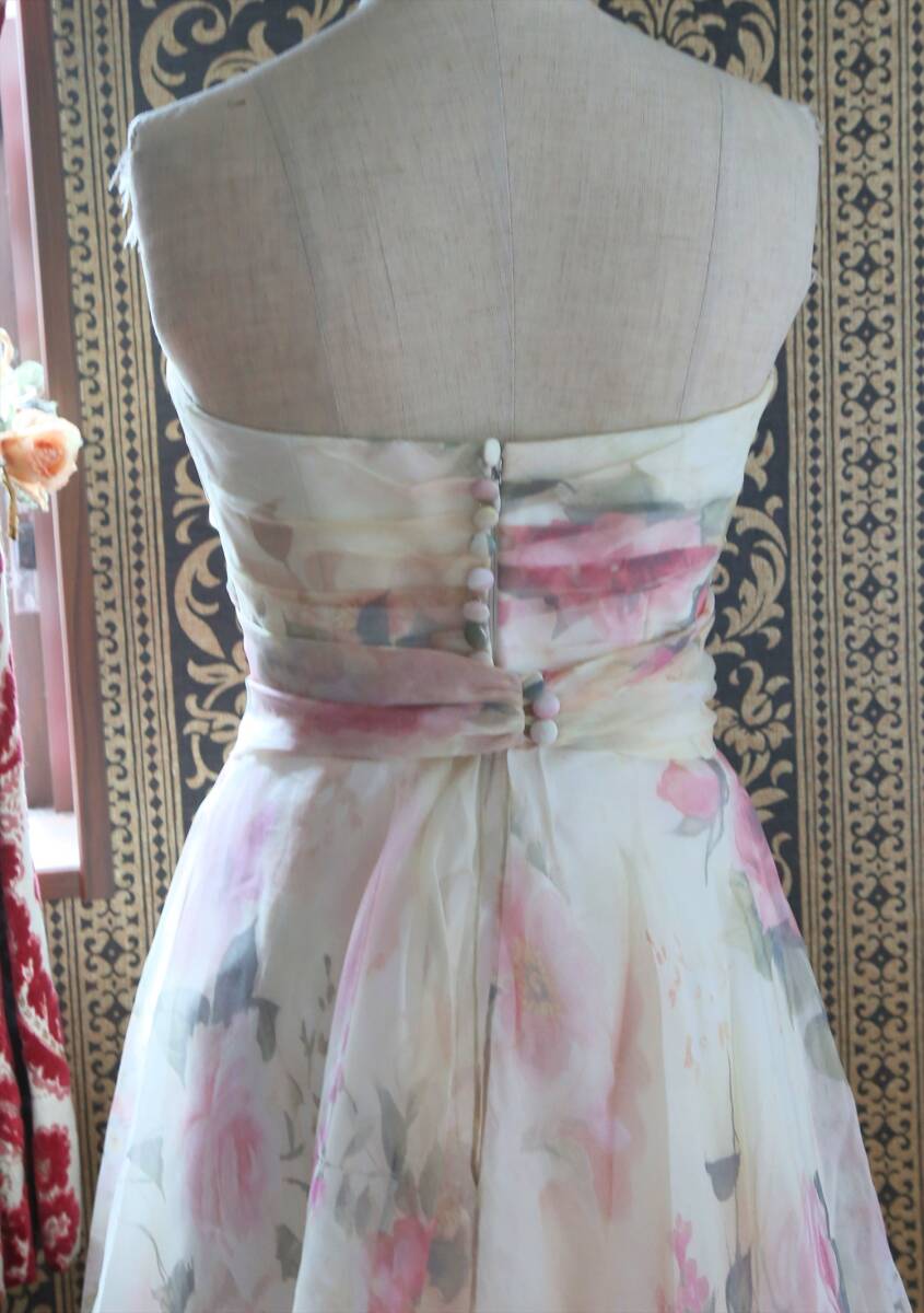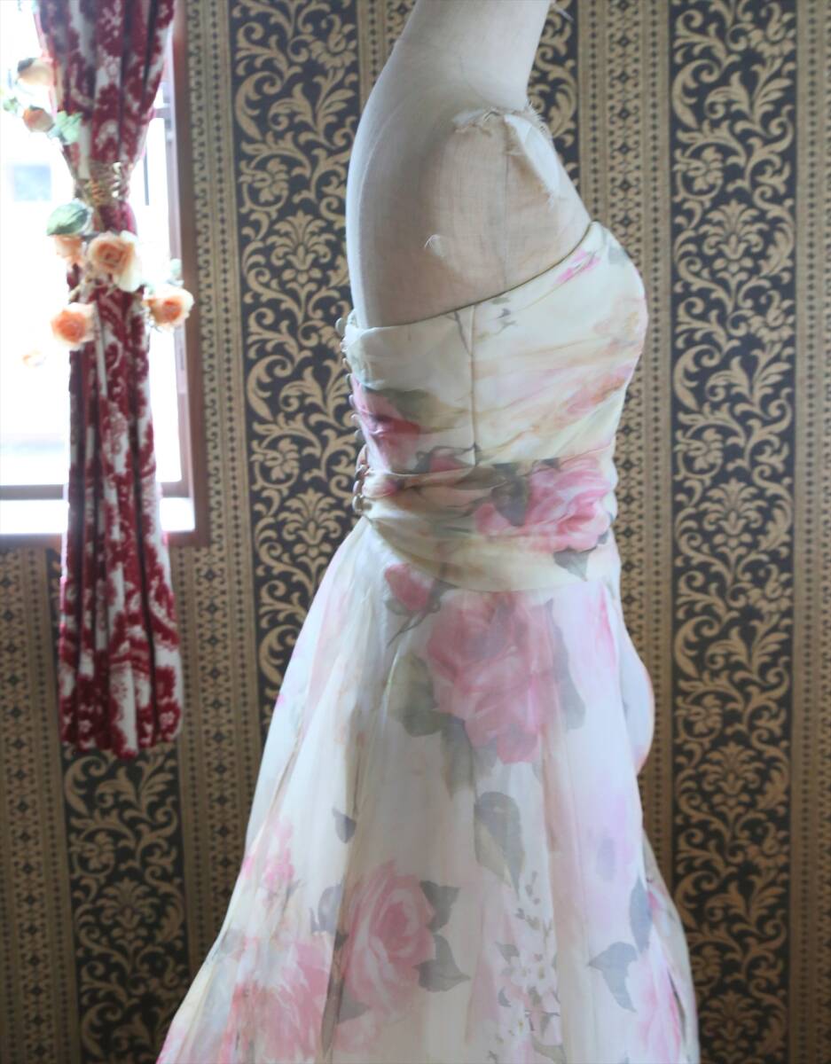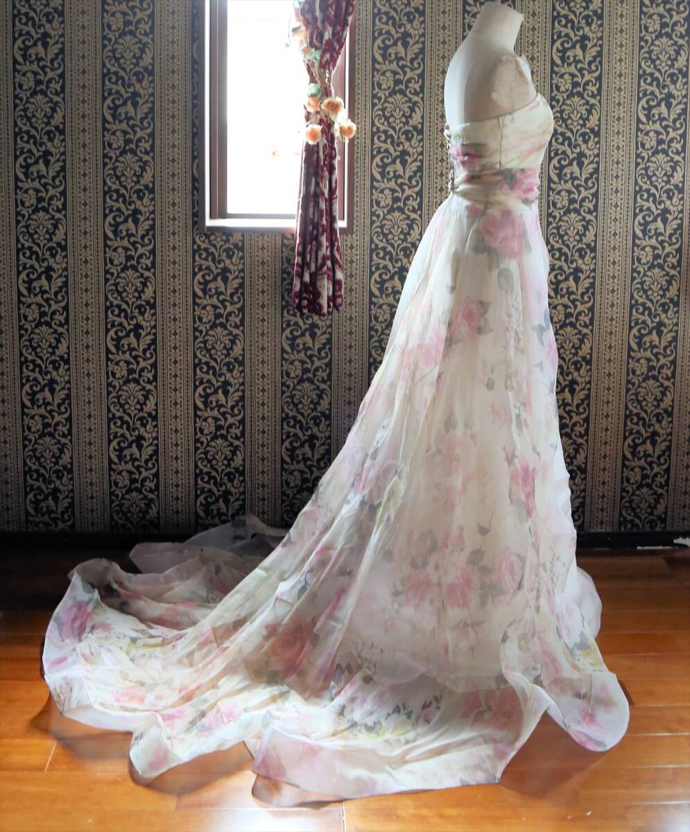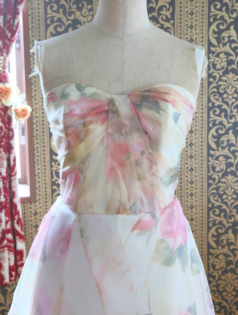 457難ありイタリア製ACQUA CHIARAシルク生地高級ウエディングドレス7号Sサイズ花柄カラードレス
