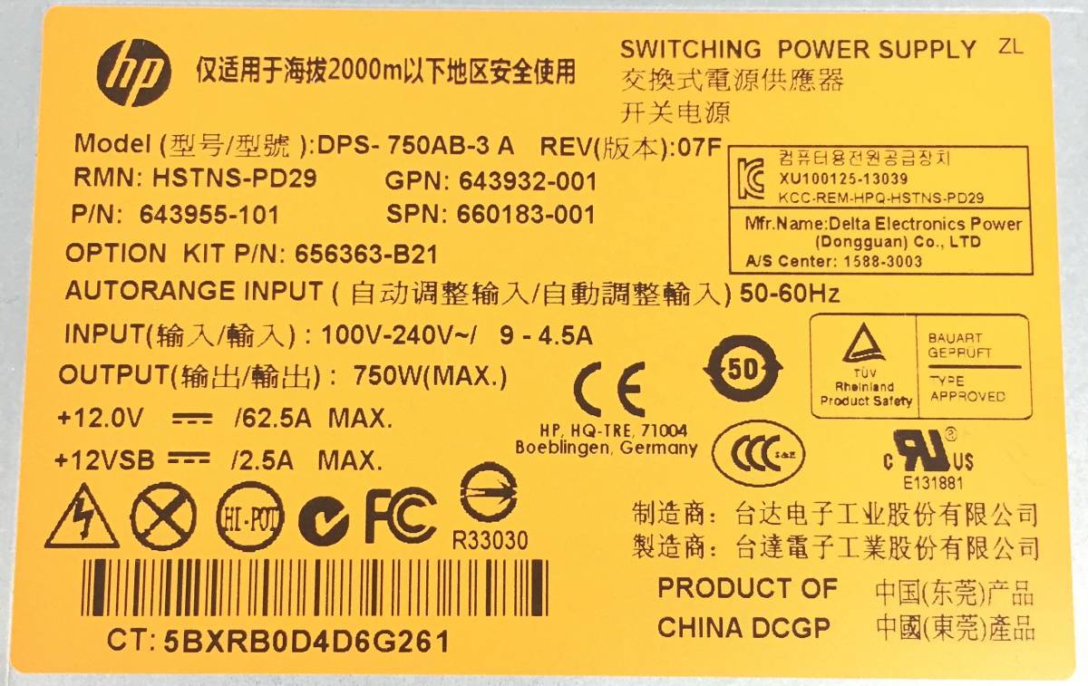 商品名 HP DPS-750AB-3 A 750W 電源ユニット