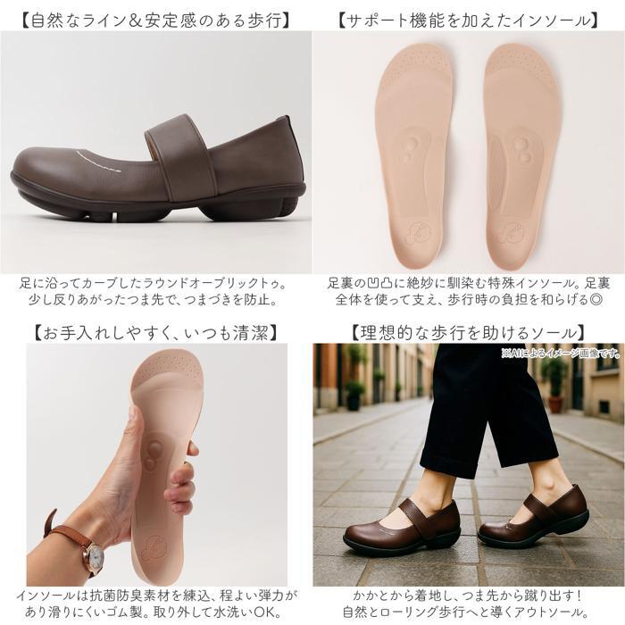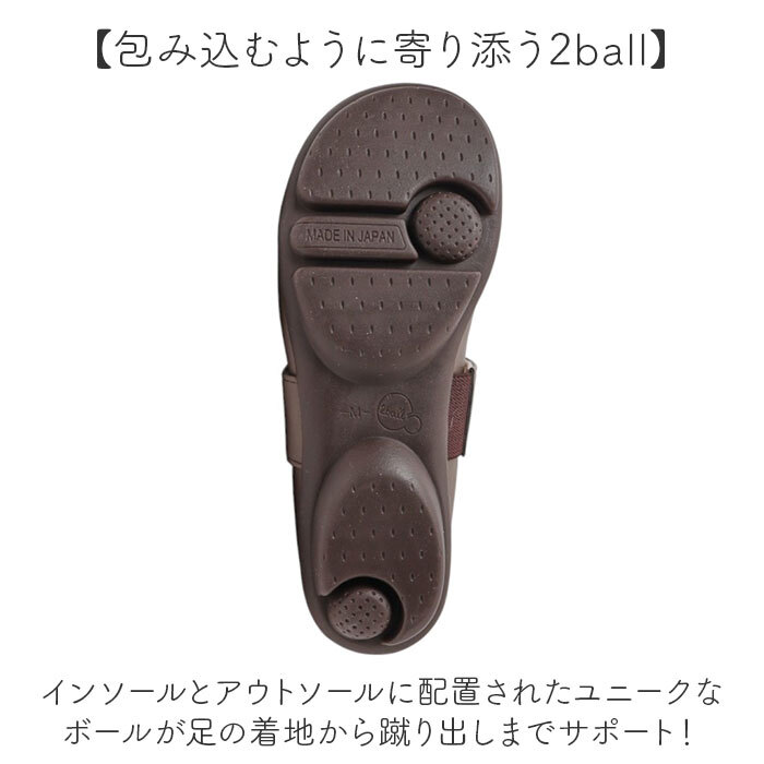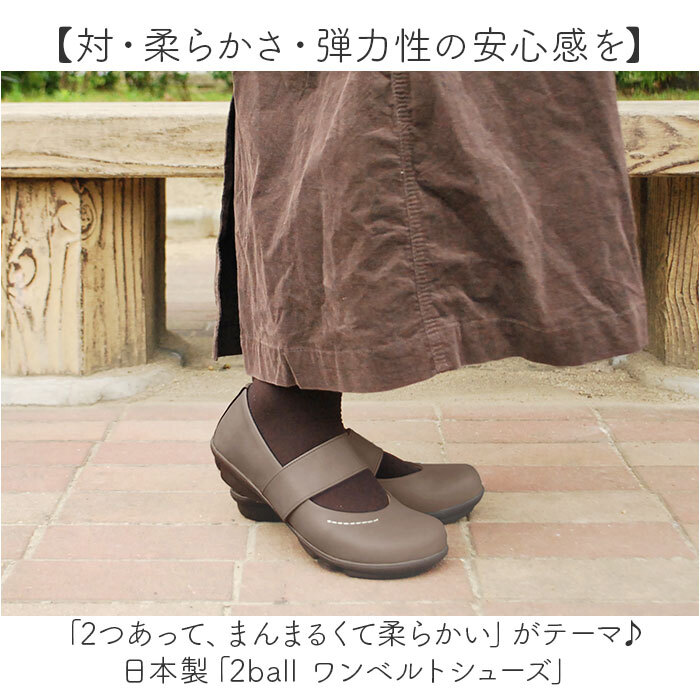 | 商品説明 | ・・【対・柔らかさ・弾力性の安心感を】 ・・「2つあって、まんまるくて柔らかい」がテーマ♪日本製「2ball ワンベルトシューズ」 ・【包み込むように寄り添う2ball】 ・インソールとアウトソールに配置されたユニークなボールが足の着地から蹴り出しまでサポート! ・【指圧ボールで絶妙なフィット感】 ・インソールは足裏の凹凸に沿った形&2つの指圧ボールを。ツボに心地よくはまるような感覚に♪ ・【クッション性のあるサポートボール】 ・靴底裏側には2つのボール。つま先側は蹴り出しを応援、かかと側は着地の衝撃を吸収。 ・(※)溝があることで屈曲可能です。 ・【シンプルで可愛らしいパンプス】 ・ややムラのある、マットな質感。履き口のステッチがさりげないアクセントに。 ・【履いた時に安らぎを感じるつくり】 ・内側にはクッション性があり、アッパーには程よいホールド感のある内ゴム。脱ぎ履きも楽々。 ・【長時間の歩行でも足元軽やか】 ・足取りがとっても軽く、疲れにくい◎スイスイ進めるのが嬉しいポイント。 ・【日本人の足を考慮した設計】 ・ワイズが広めの木型を採用。よりバランスを取りやすく、蹴り出しやすいデザインに。 ・【自然なライン&安定感のある歩行】 ・足に沿ってカーブしたラウンドオーブリックトゥ。少し反りあがったつま先で、つまづきを防止。 ・【サポート機能を加えたインソール】 ・足裏の凹凸に絶妙に馴染む特殊インソール。足裏全体を使って支え、歩行時の負担を和らげる◎ ・【お手入れしやすく、いつも清潔】 ・インソールは抗菌防臭素材を練込、程よい弾力があり滑りにくいゴム製。取り外して水洗いOK。 ・【理想的な歩行を助けるソール】 ・かかとから着地し、つま先から蹴り出す!自然とローリング歩行へと導くアウトソール。 ・【お出かけが楽しくなる履き心地】 ・軽量のローヒール。サッと履けて、普段使いにも長距離のお出かけにもぴったり。 |