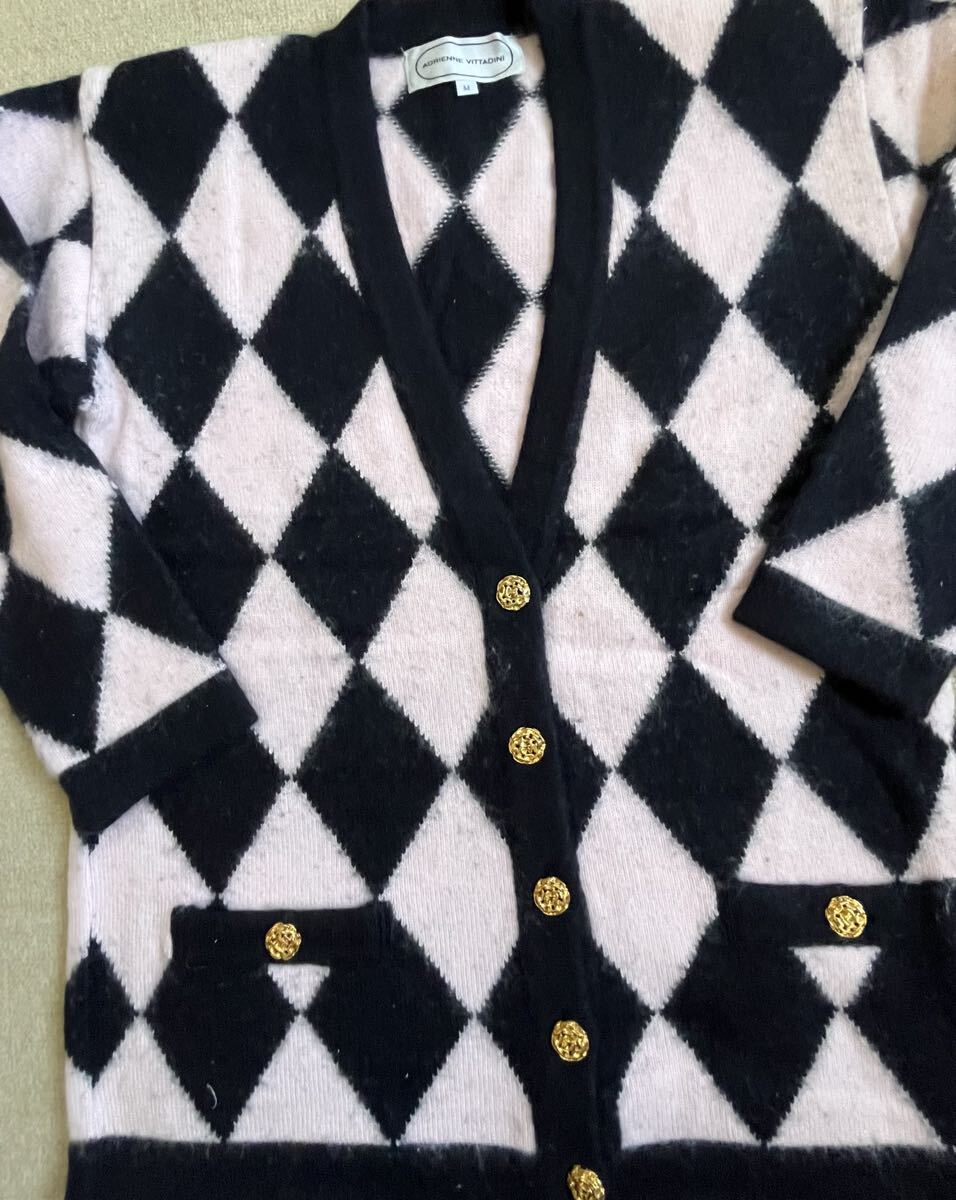 AdrienneVittadini エドリアンヌ・ヴィッタディーニ 長袖カーディガン ニットカーディガン Vカーデ 金ボタン マタニティー 黒とピンク