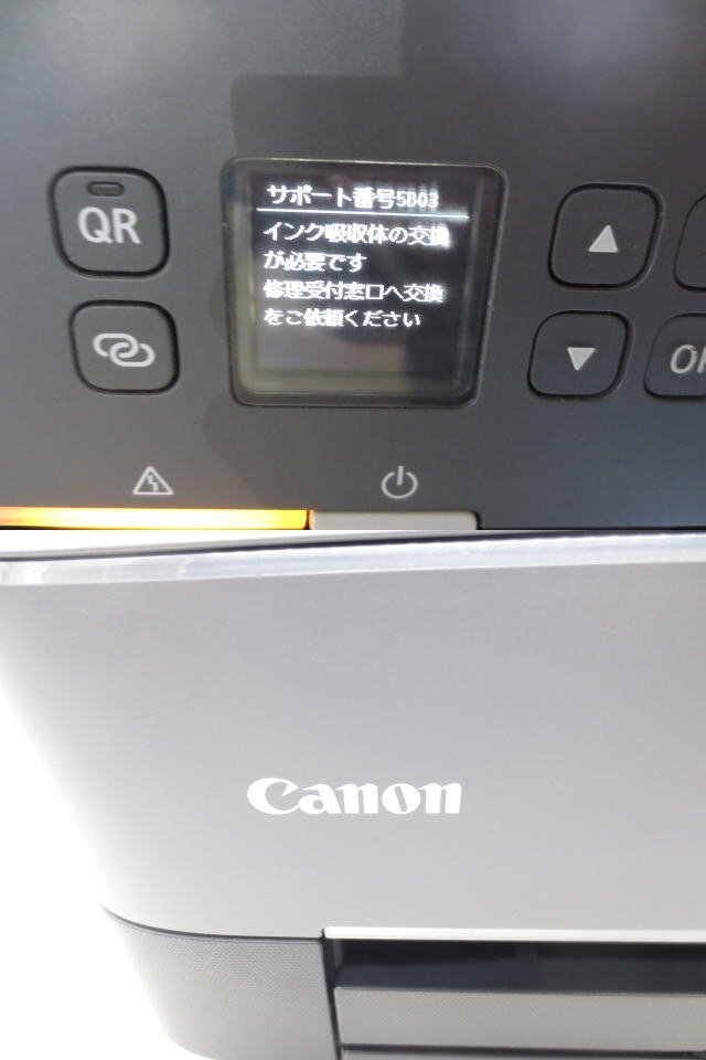 通電を行いましたが「インク吸収体の交換が必要です修理受付窓口へ交換をご依頼下さい」