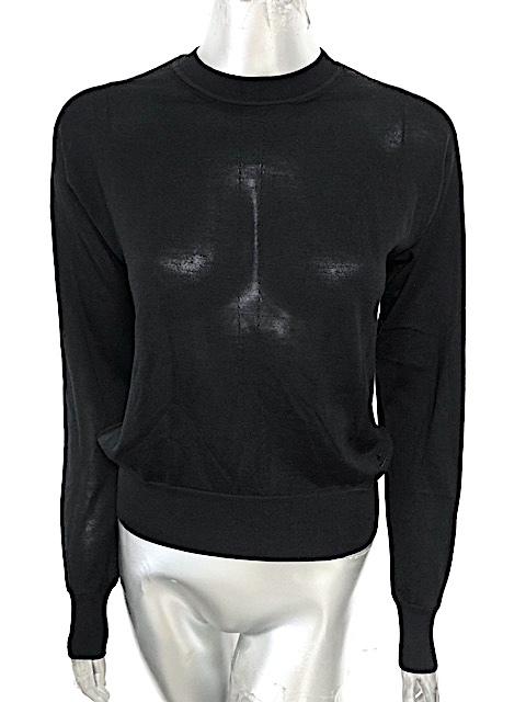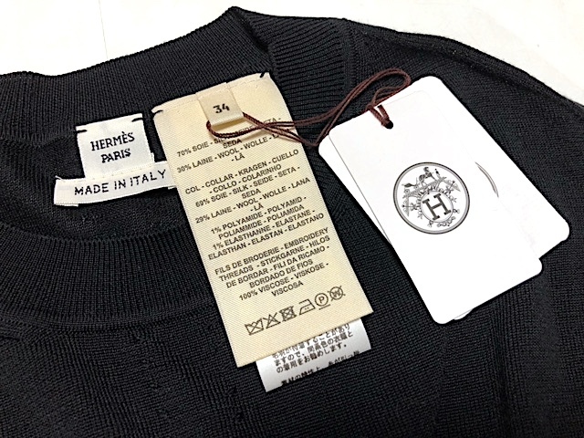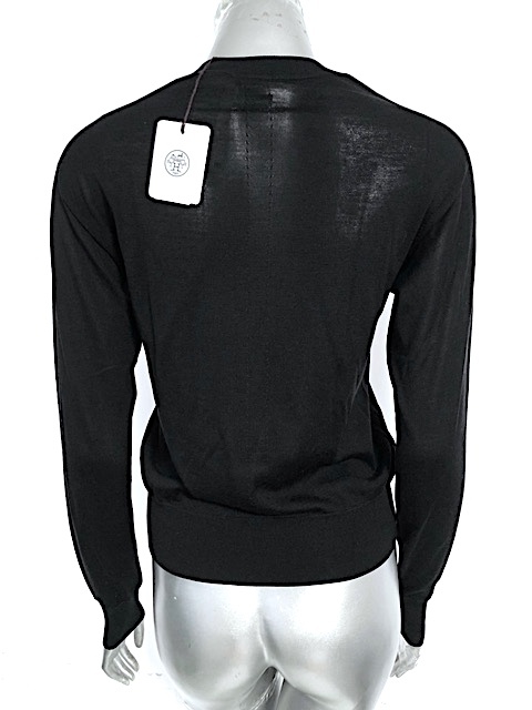 ☆二点落札で送料無料!2A48【未使用/タグ付】HERMES エルメス 最高級 シルク×ウール ロゴ刺繍 ニット セーター 黒 34 S-M ブラック 薄手