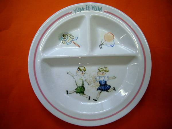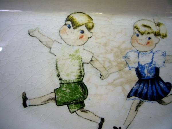 | 商品名 | 50'S【ペコちゃん・ポコちゃん風・子供絵皿・陶器】難有り |