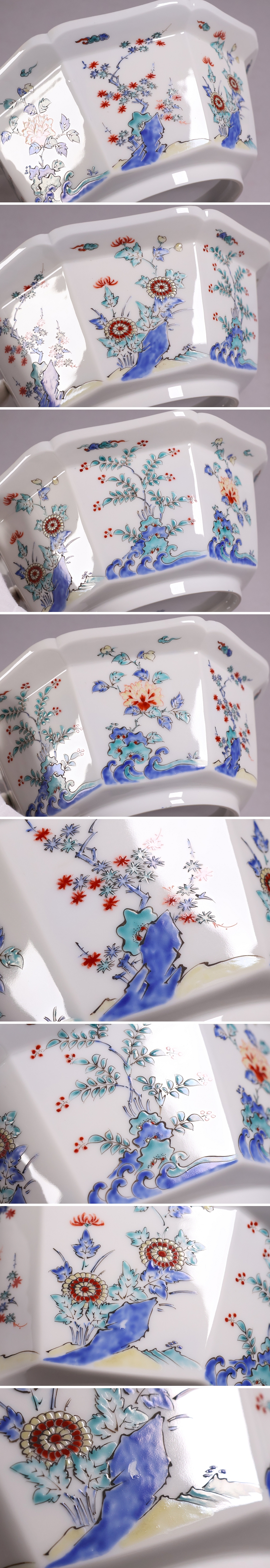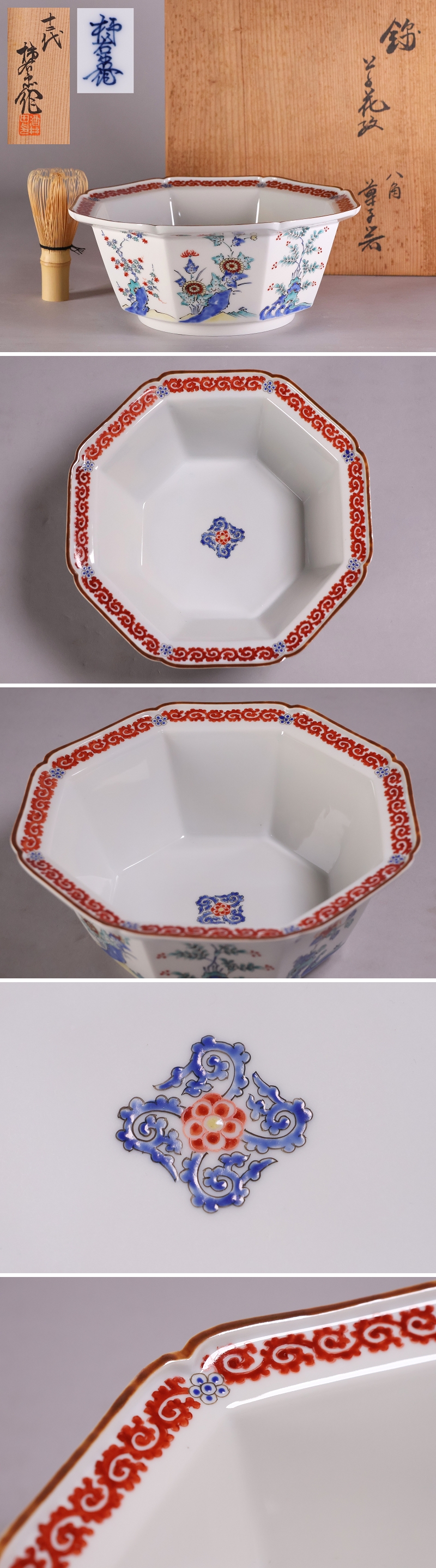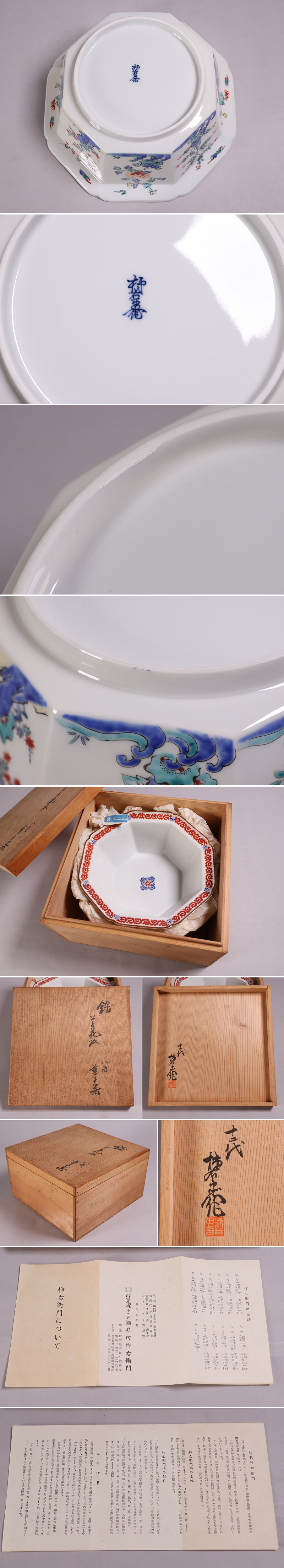 ◇十二代 酒井田柿右衛門 錦 草花紋 八角 菓子器 鉢 共箱 栞 陶芸 陶磁器 色絵 有田【MA683】◇
