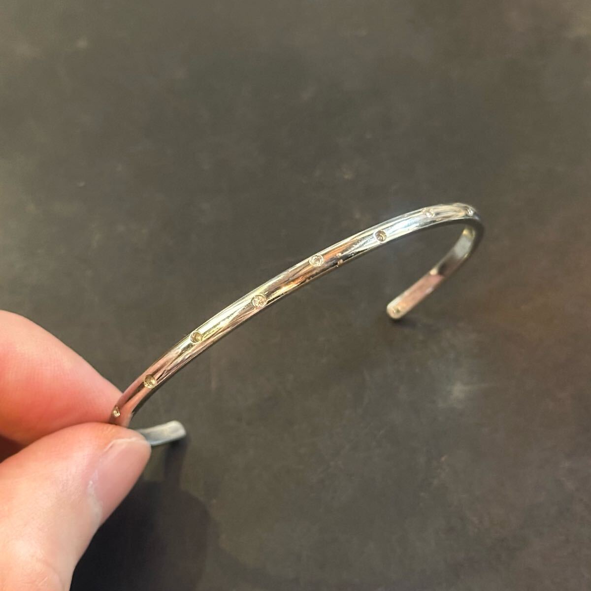 海外で買い付けたストーンデザインのシルバーバングルです。