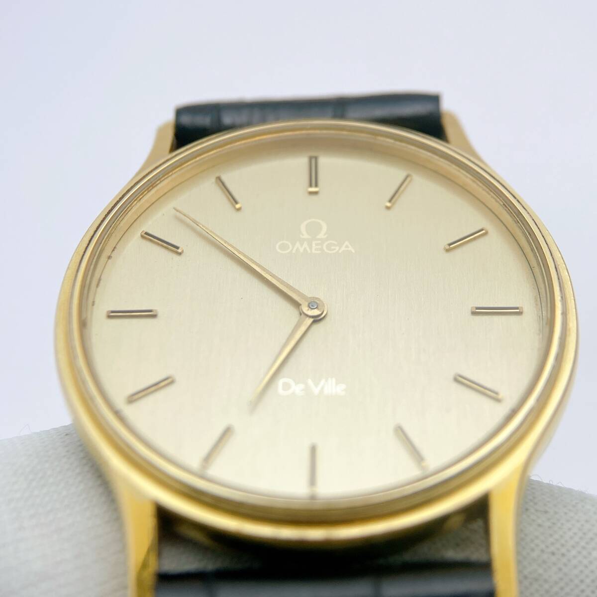 美品 オメガ OMEGA デビル DEVILLE メンズ 腕時計 クオーツ QZ ゴールド ラウンド プッシュ ローマン 薄型 1365 電池切れ ジャンク y21