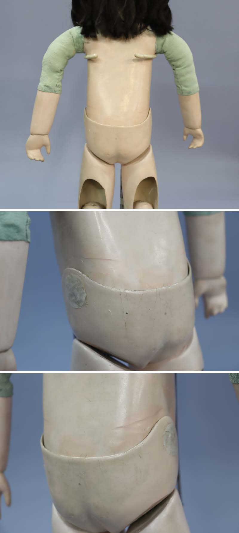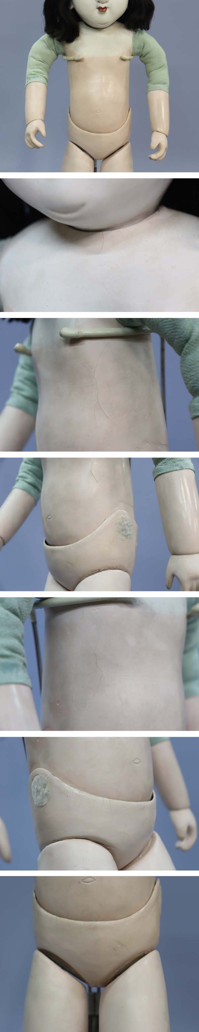 ボディ、腕、手脚の所々に胡粉のヒビと色足しがあります。
