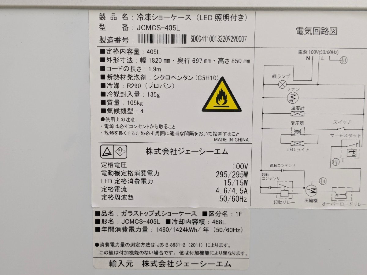 埼玉発 JCM 冷凍ショーケース JCMCS-405L 105kg 2021年製 MM SK | |||||||||||||||||||||||||||||||||||||||||||||