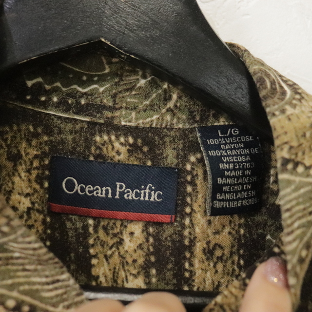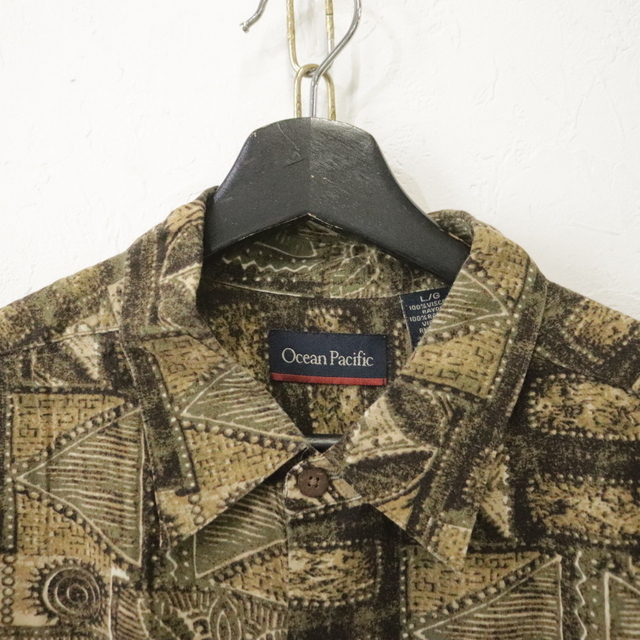 X354 2000年代製 OceanPacific 半袖シャツ■00s 表記Lサイズ ブラウン 総柄 アメカジ ストリート 古着 激安 古着卸 ヴィンテージ 90s 80s
