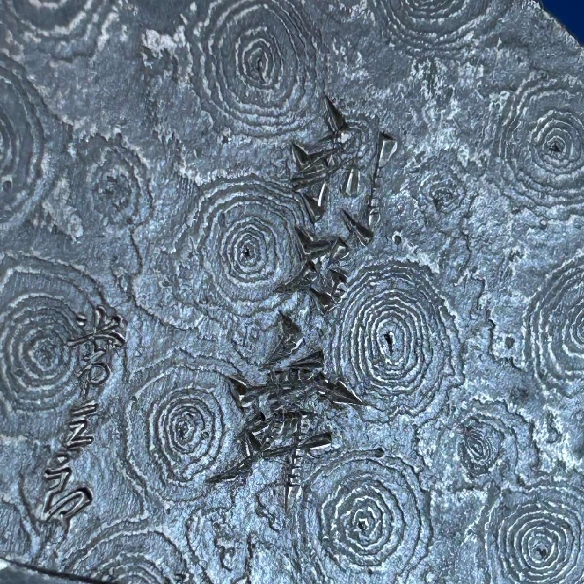 ・錬鉄の裏上面に16層ダマスカス鋼と裏に青紙1号鍛造古鋼をW鍛造。