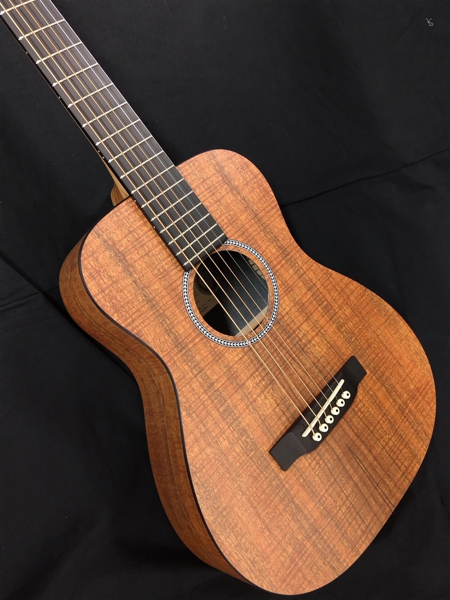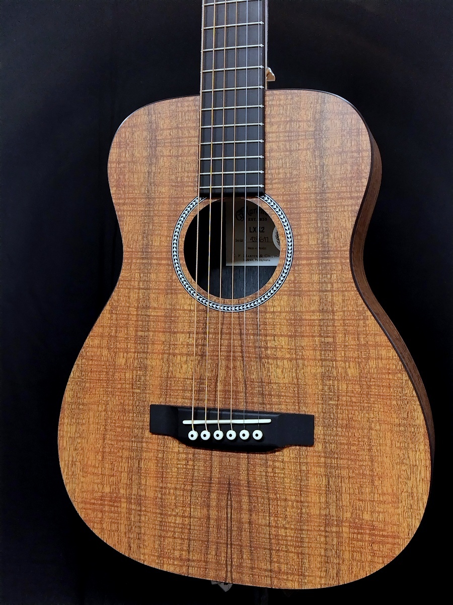 アウトドアや旅先にも便利なリトル・マーティンは、子供から大人まで楽しめる人気モデル。木の繊維を特殊な圧縮法でプレスしたハイプレッシャー・ラミネイト(HPL)と呼ばれる特殊合板を材料に使用。コア柄のハイプレッシャー・ラミネイトをボディに使用した人気モデル。