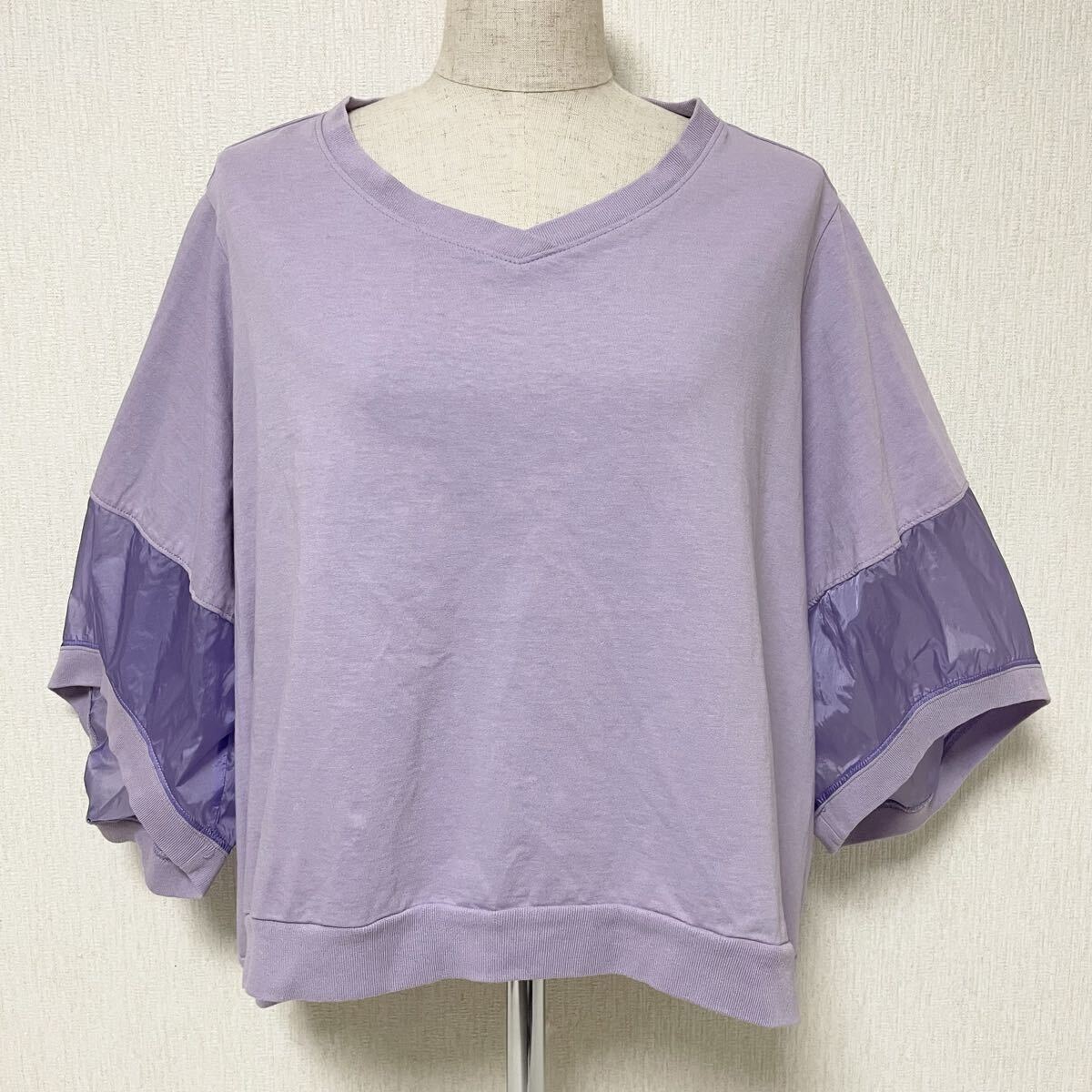 即決☆AVIE アビィ 袖切替 異素材 半袖 カットソー 38 ラベンダー M
