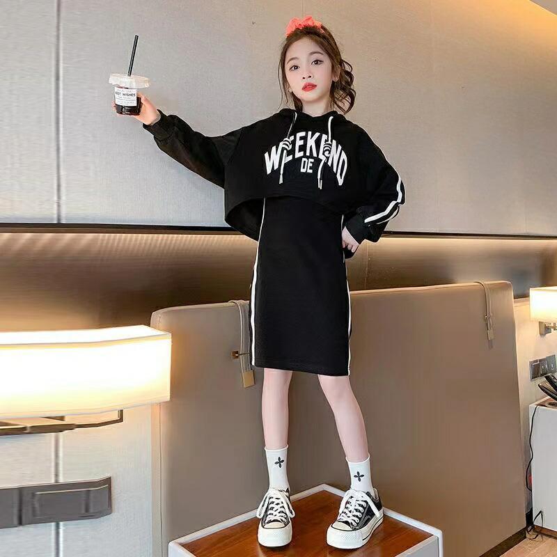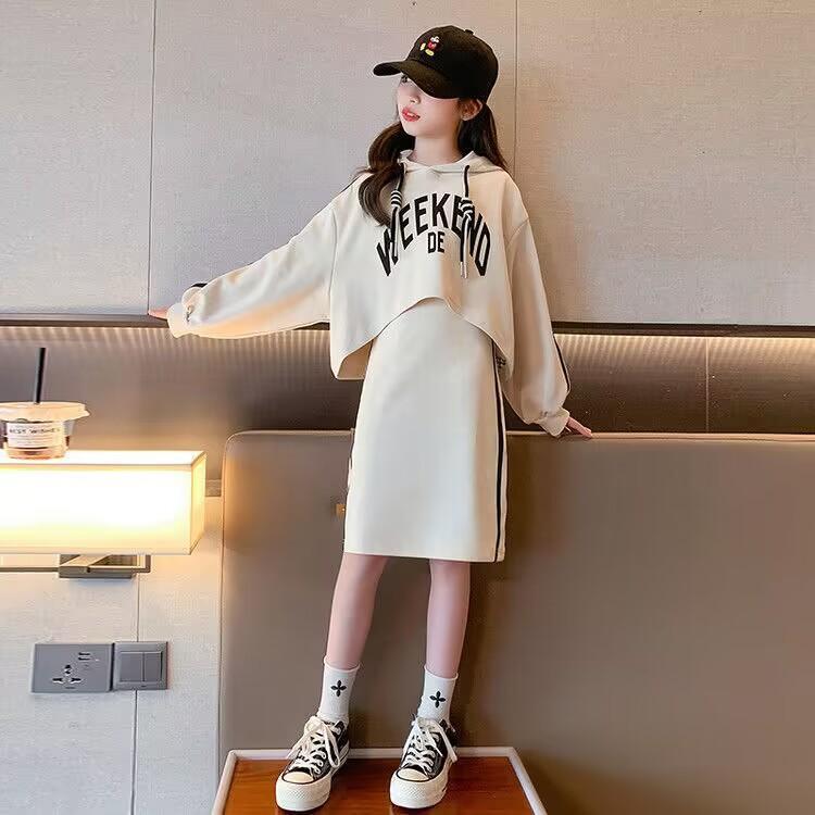 新品未使用 140cm ベージュ〔#BM英字パーカーワンピース〕長袖 パーカー ワンピース セットアップ 子供 キッズ 女の子 ノースリーブ 小学生