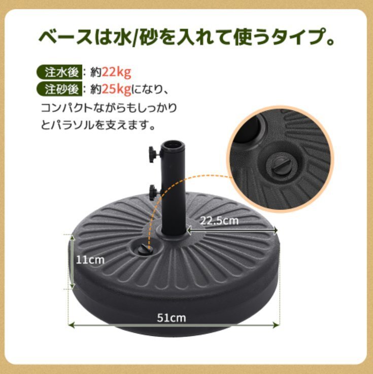パラソル単体 直径220cm 30+UPF紫外線対策 角度調整 パラソルセット ベース パラソル ガーデンパラソル