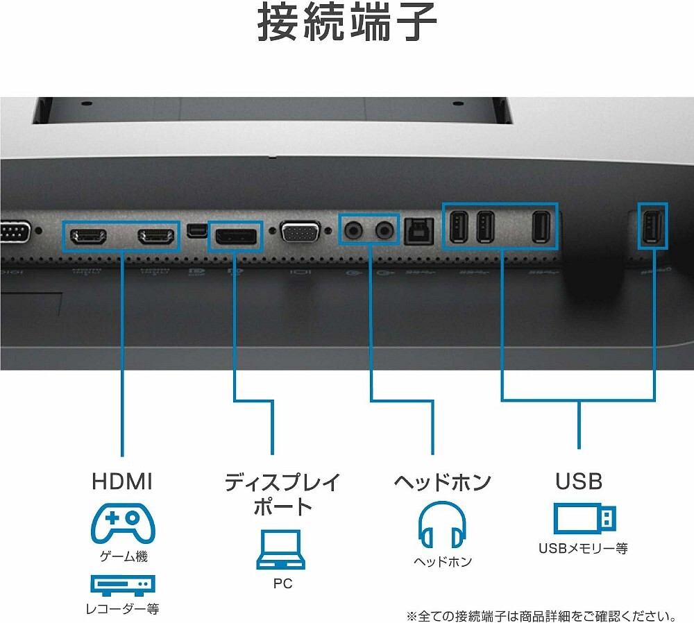 [接続端子]DPx1,mDPx1,HDMIx2,D-Sub15ピンx1