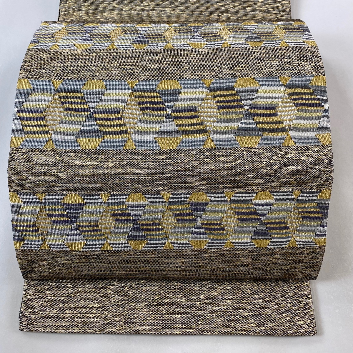 | 袋帯 美品 秀品 幾何学 金糸 刺繍 金茶 お太鼓柄 正絹 【中古】 |