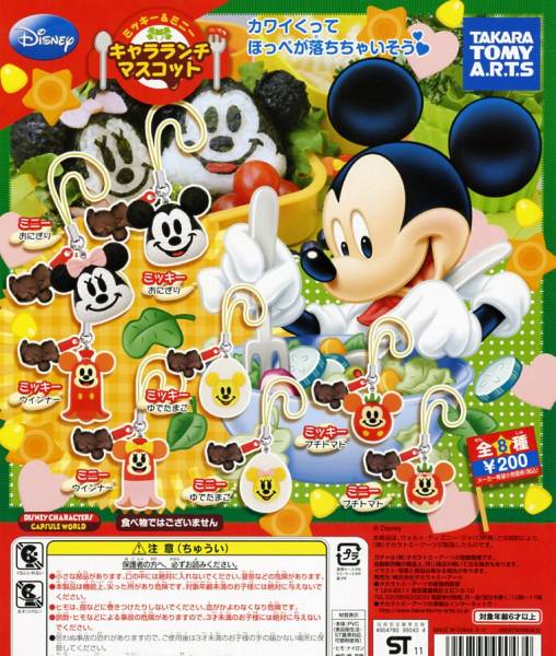 ◆ディズニー ミッキー&ミニー キャラ ランチ マスコット…全8種 (おにぎり/ウィンナー/キャラ弁/お弁当) ミニチュアフード/フィギュア