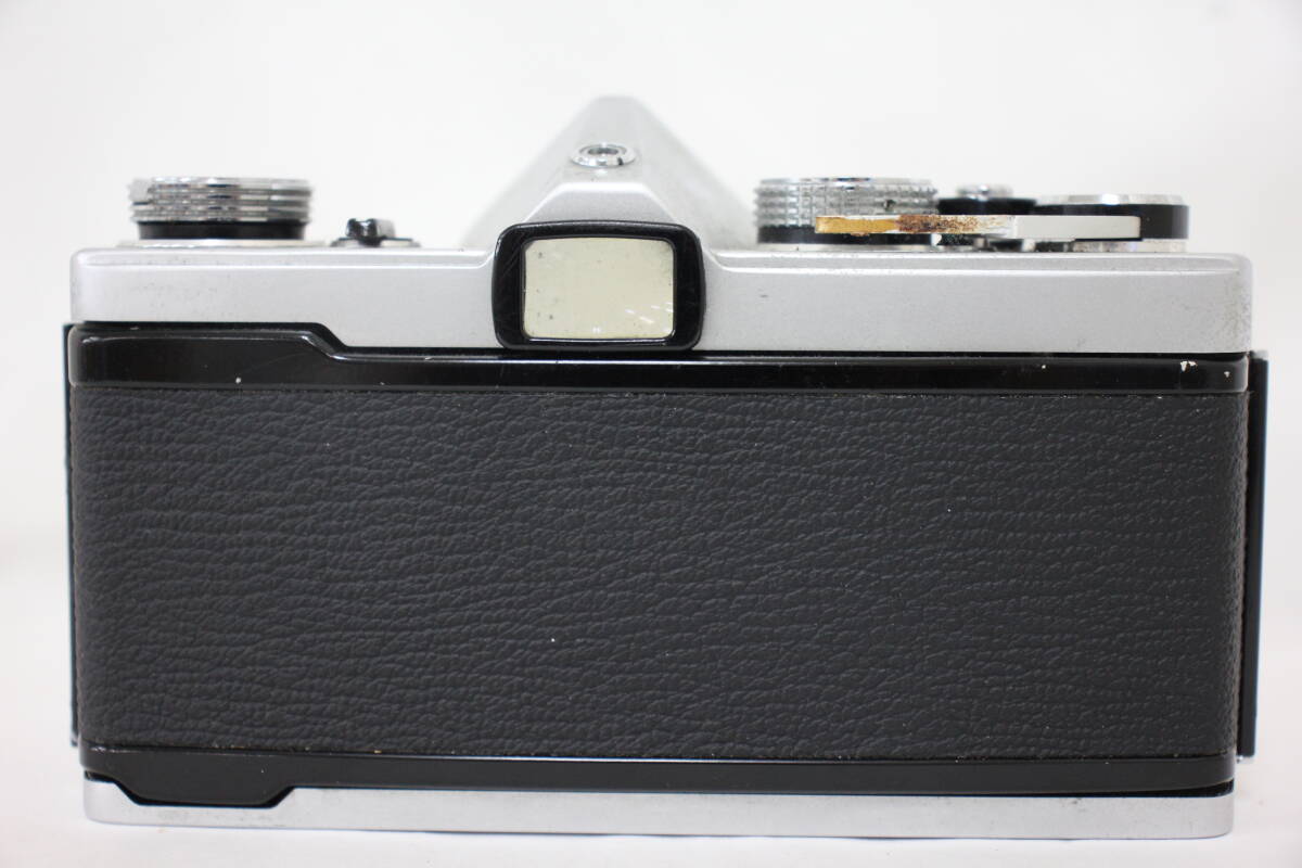 ファインダー内に腐食のような汚れがございます。シャッターチャージレバーのカバーが欠損しています。