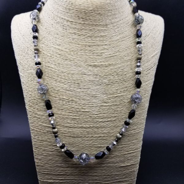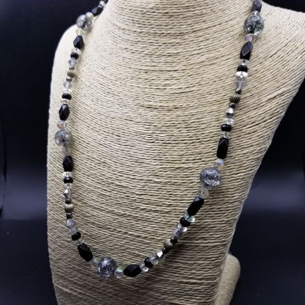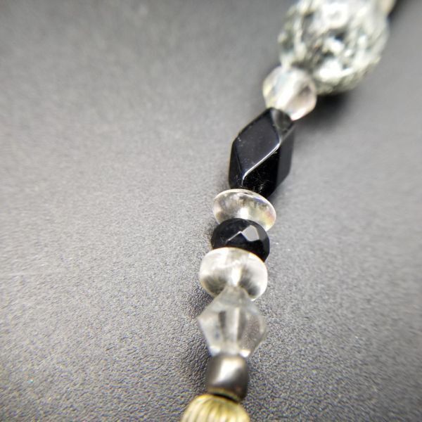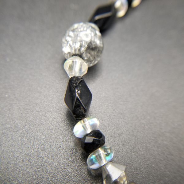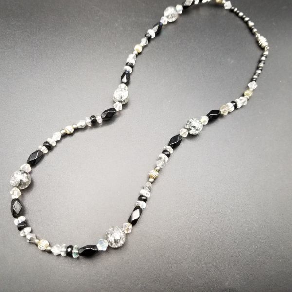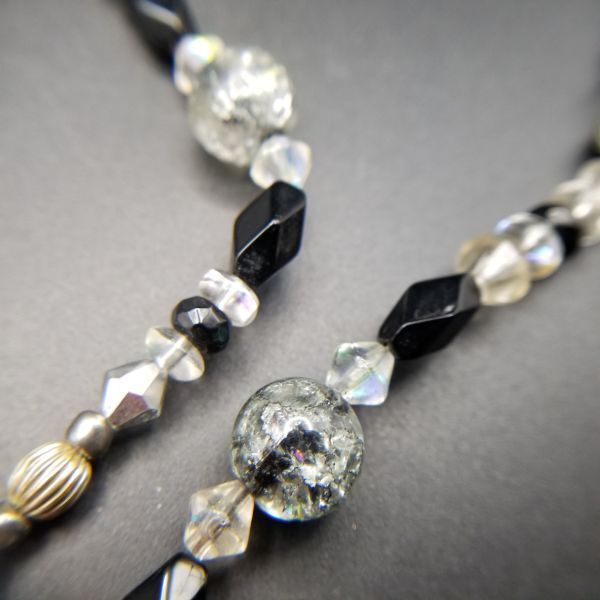 クリア/ブラックビーズ リンク ヴィンテージ ロングネックレス ペンダント レトロ コスチュームジュエリー ATL14