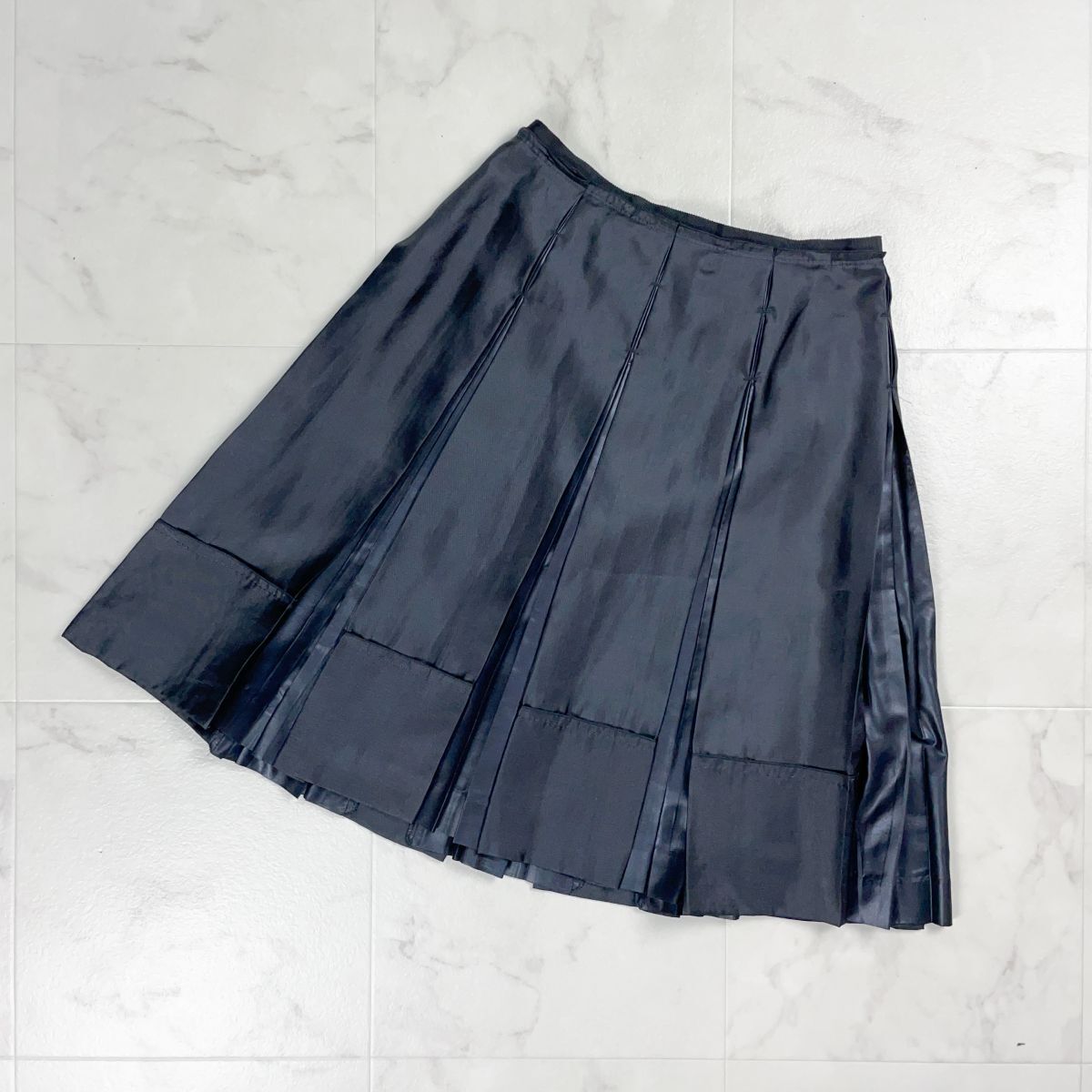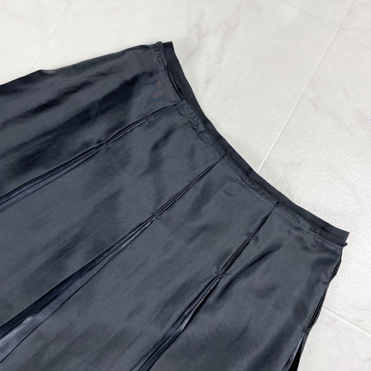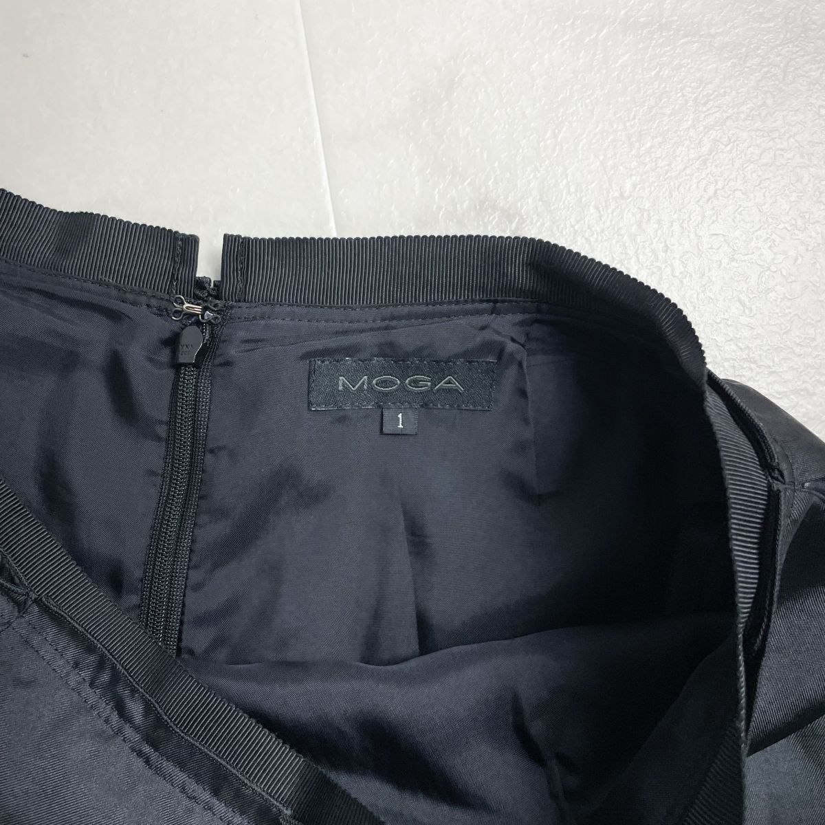 美品 MOGA モガ デザインボックスプリーツスカート ミモレ丈 裏地付き 微光沢 ブラック 黒 サイズ1*GD1197
