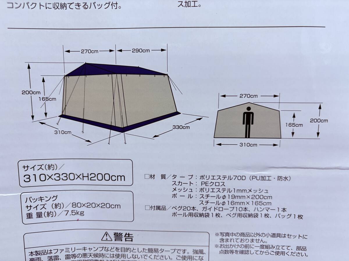 | ■HH0458t/未使用/CAPTAIN STAG キャプテンスタッグ/レニアス メッシュ タープ セット/M-3165/テント/キャンプ/アウトドア/4-5人用■ | |